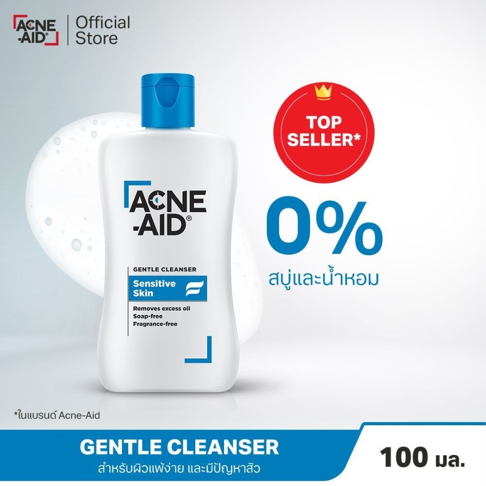 [ส่งฟรี] ACNE-AID Gentle Cleanser 100 ML x3 แอคเน่-เอด เจนเทิ่ล เคลนเซอร์ สำหรับผิวแพ้ง่าย เป็นสิวง่าย 100 มล x3