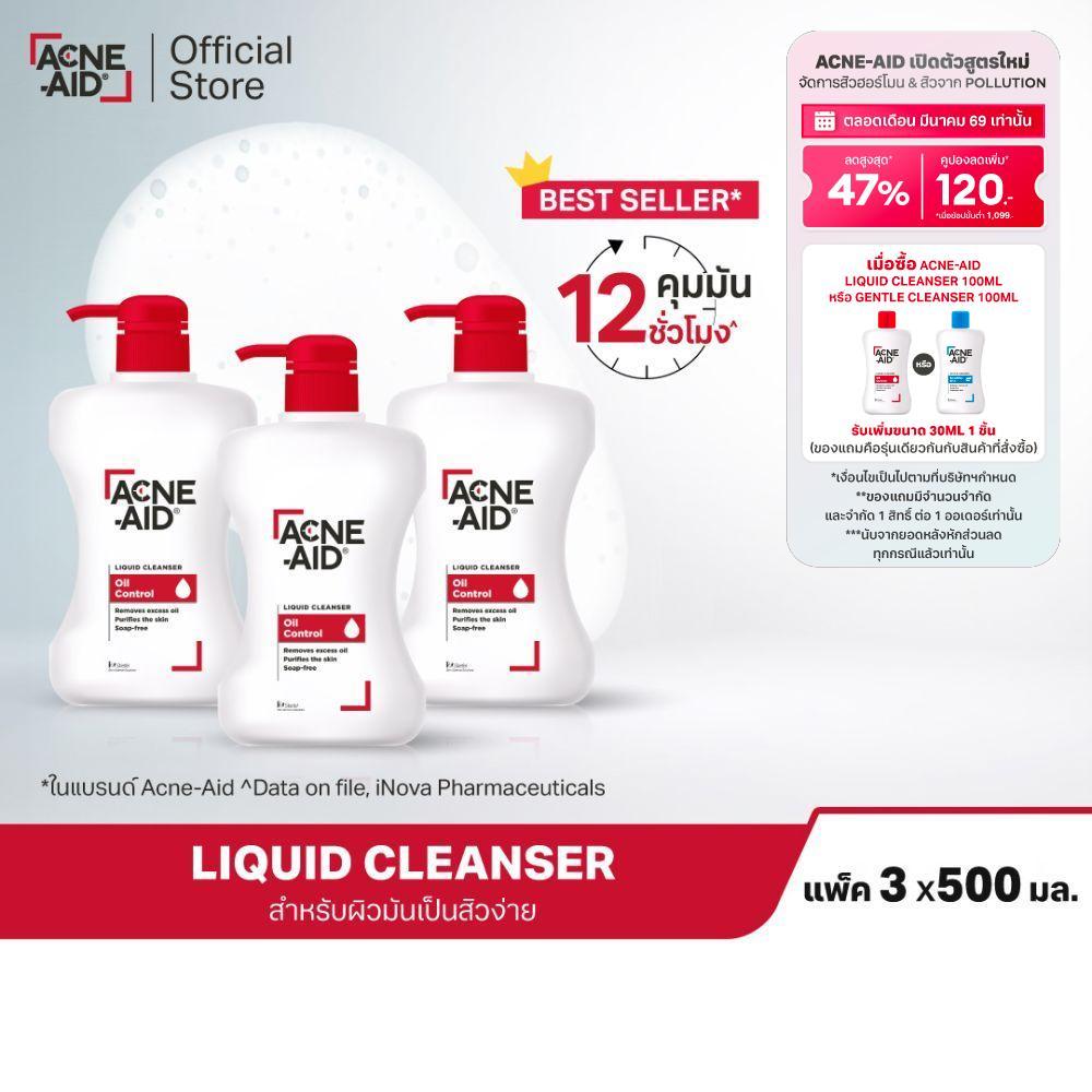 [ส่งฟรี] ACNE-AID LIQUID CLEANSER 500 ML x 3 แอคเน่-เอด ลิควิด เคลนเซอร์ สำหรับผิวมัน เป็นสิวง่าย 500 มล X3