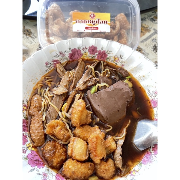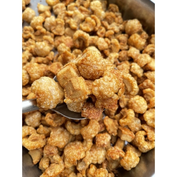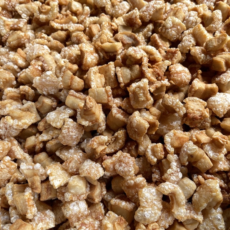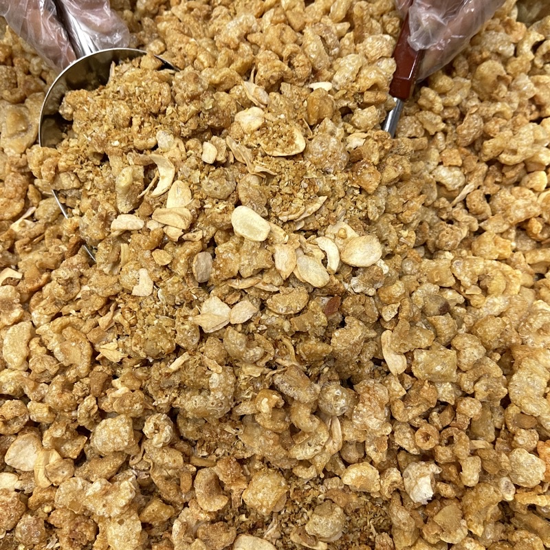 กากหมูป๊อบ เจียวสดใหม่ทุกวัน ไม่เหม็นหืน มี2แบบ กระเทียม ,หมูล้วน