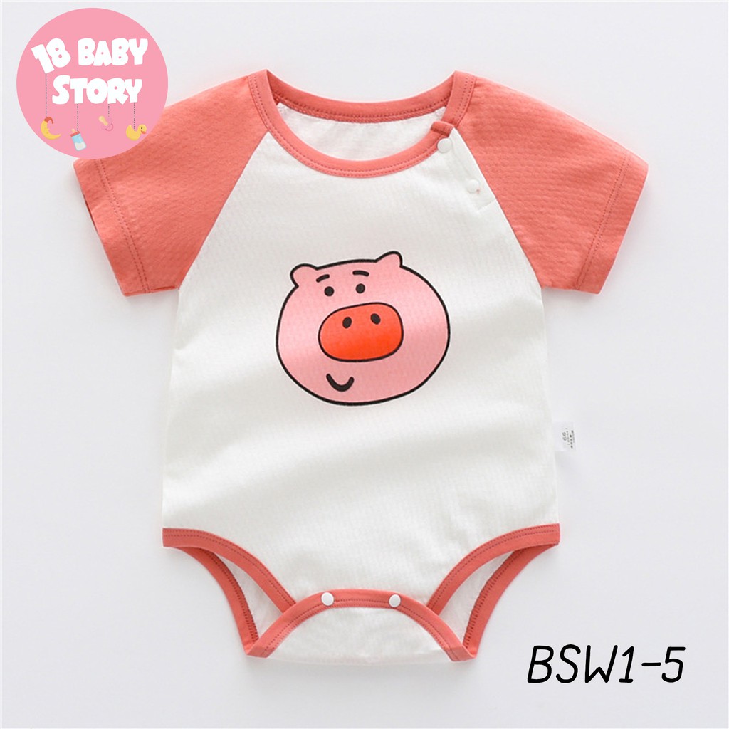 (ล้างสต๊อก)(รุ่นผ้านิ่มสบาย)ชุดเด็กอ่อน บอดี้สูทเด็ก เสื้อผ้าเด็ก แขนสั้น ขาว้าว ชุดหมี(BSW1 ลิงค์1)