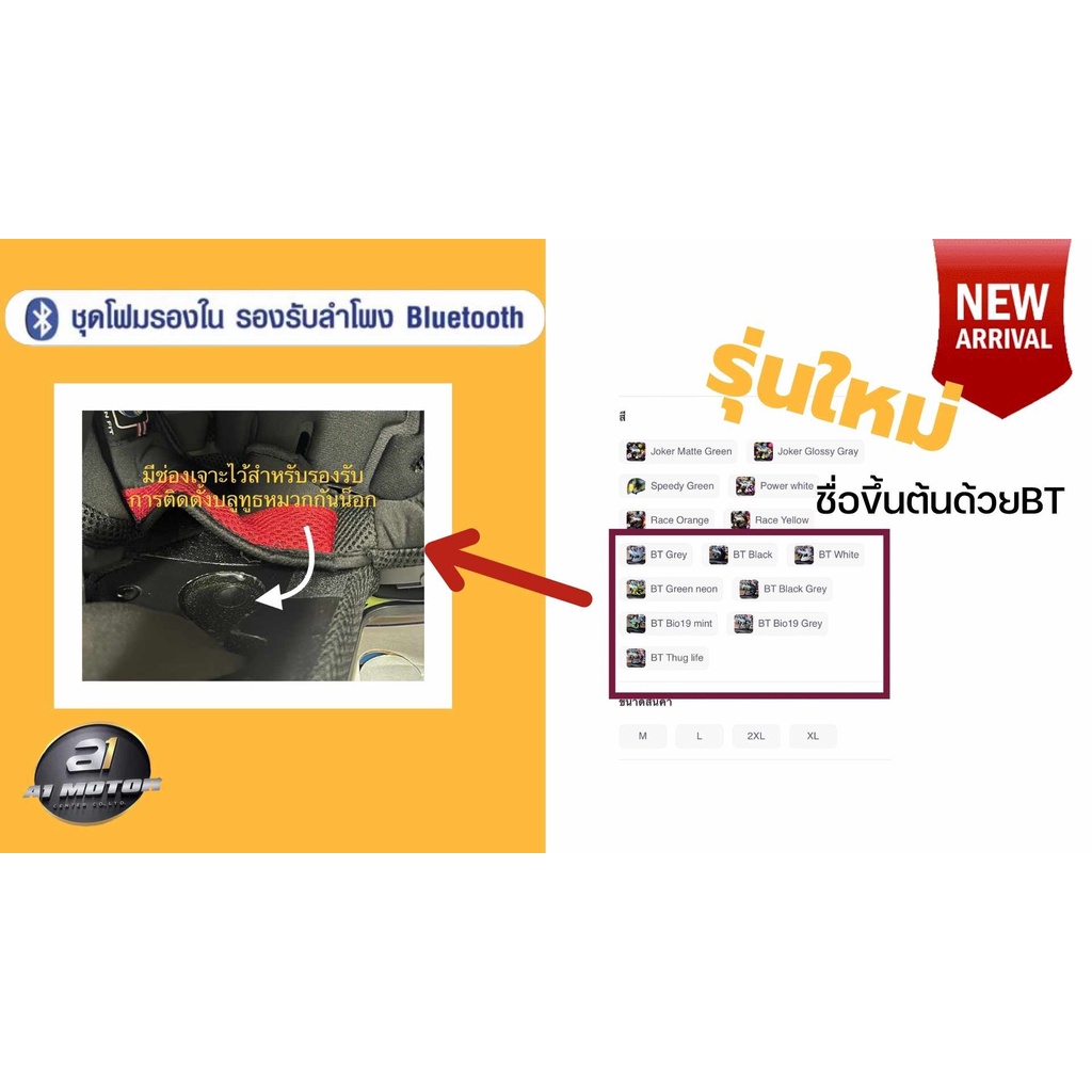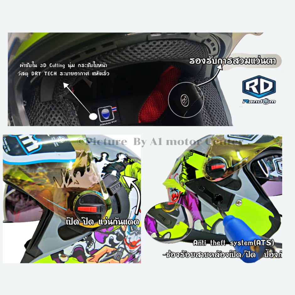 RD Random BTหมวกกันน็อค AIR FORCE1 BT รองรับบลูทูธ M L XL 2XL แว่น2ชั้น รองการใส่แว่นตา มอก.