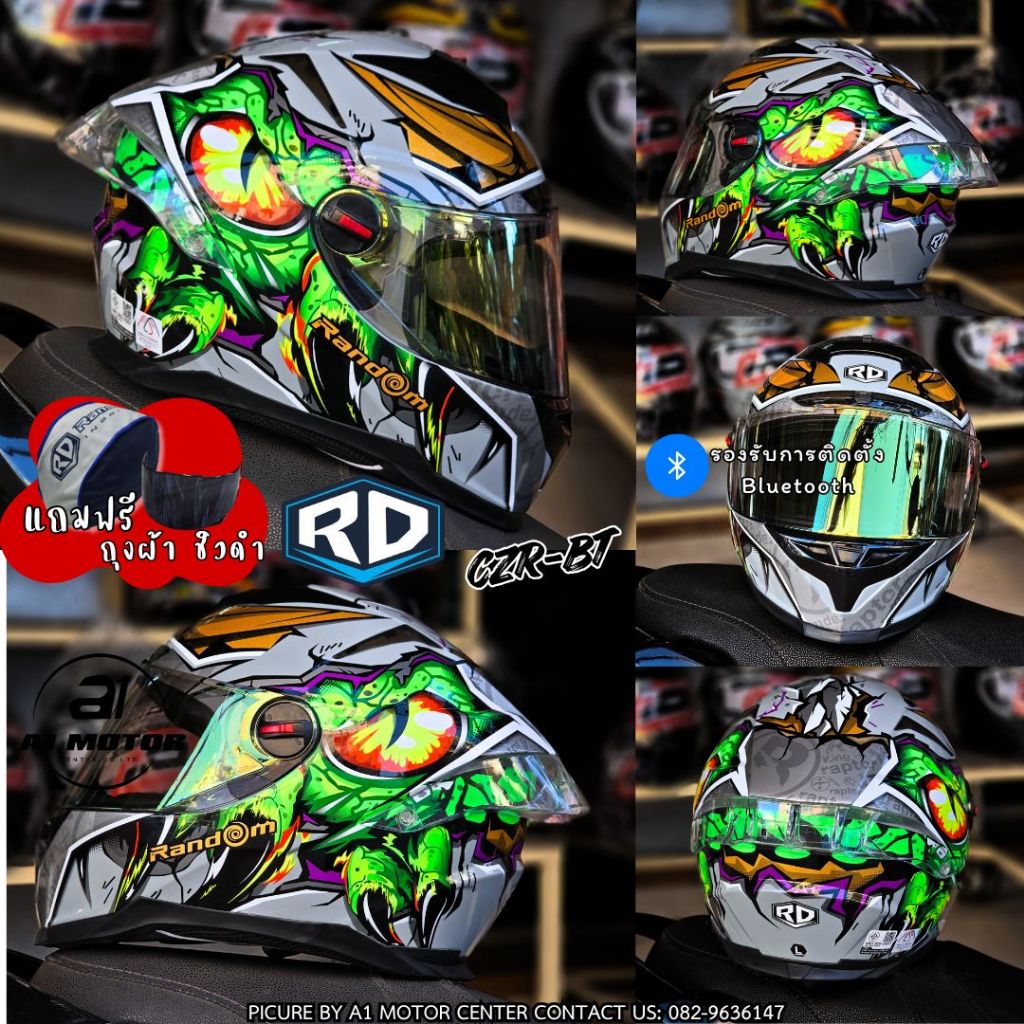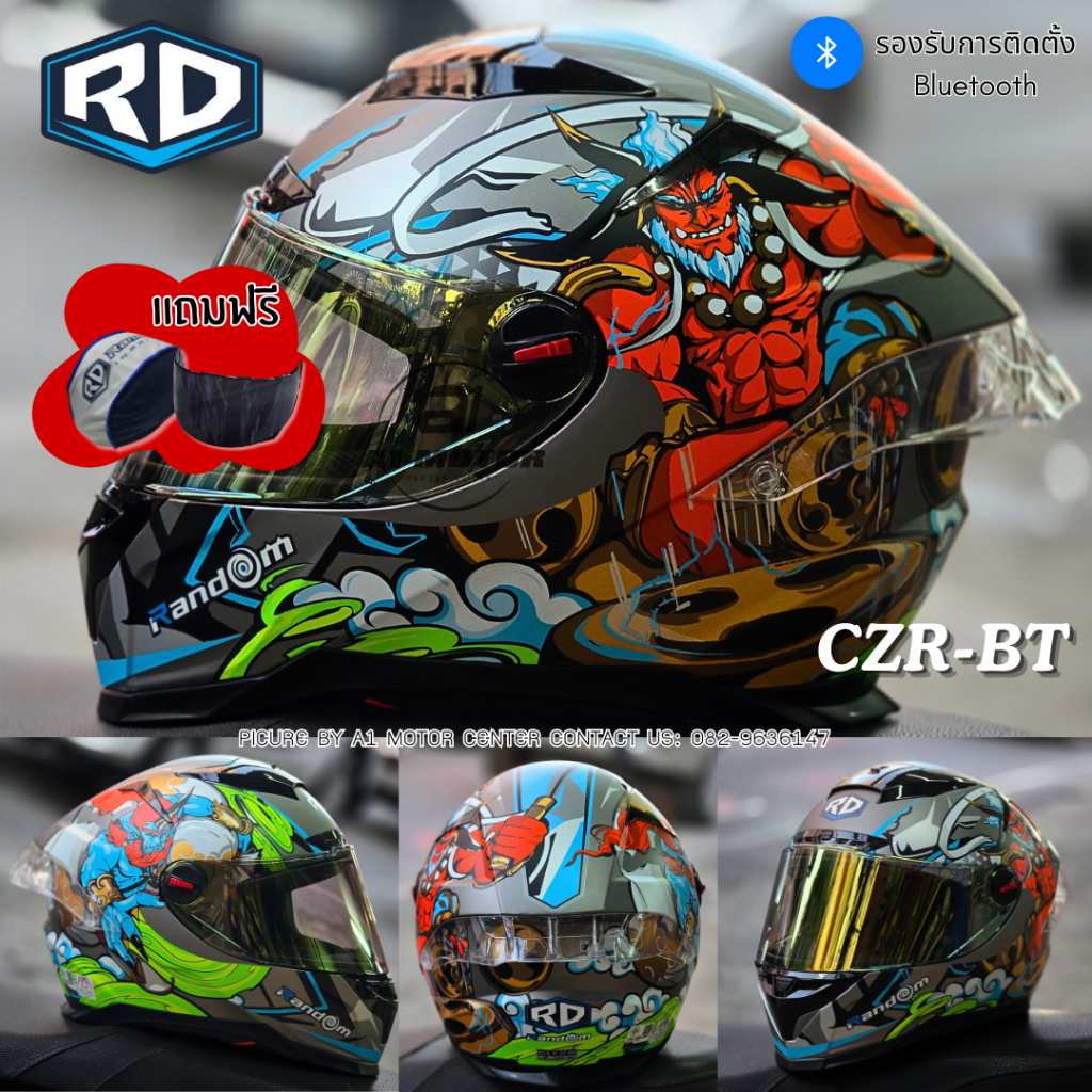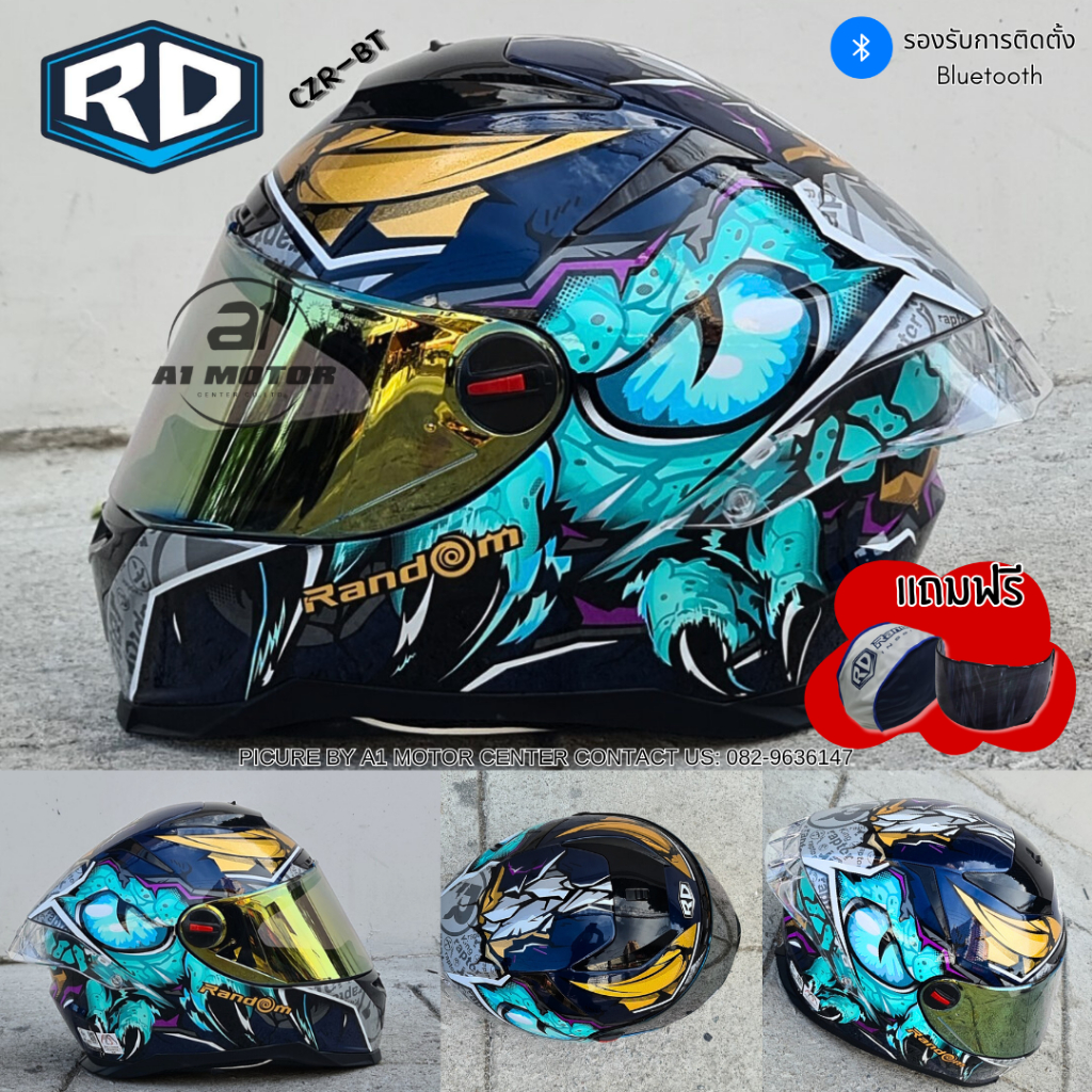 หมวกกันน็อค RD Random รุ่น CZ-R BT ฟรีถุงผ้า ชิวดำ 1 แผ่น รองรับการติดบลูทูธ ถอดซักได้ (CZR)