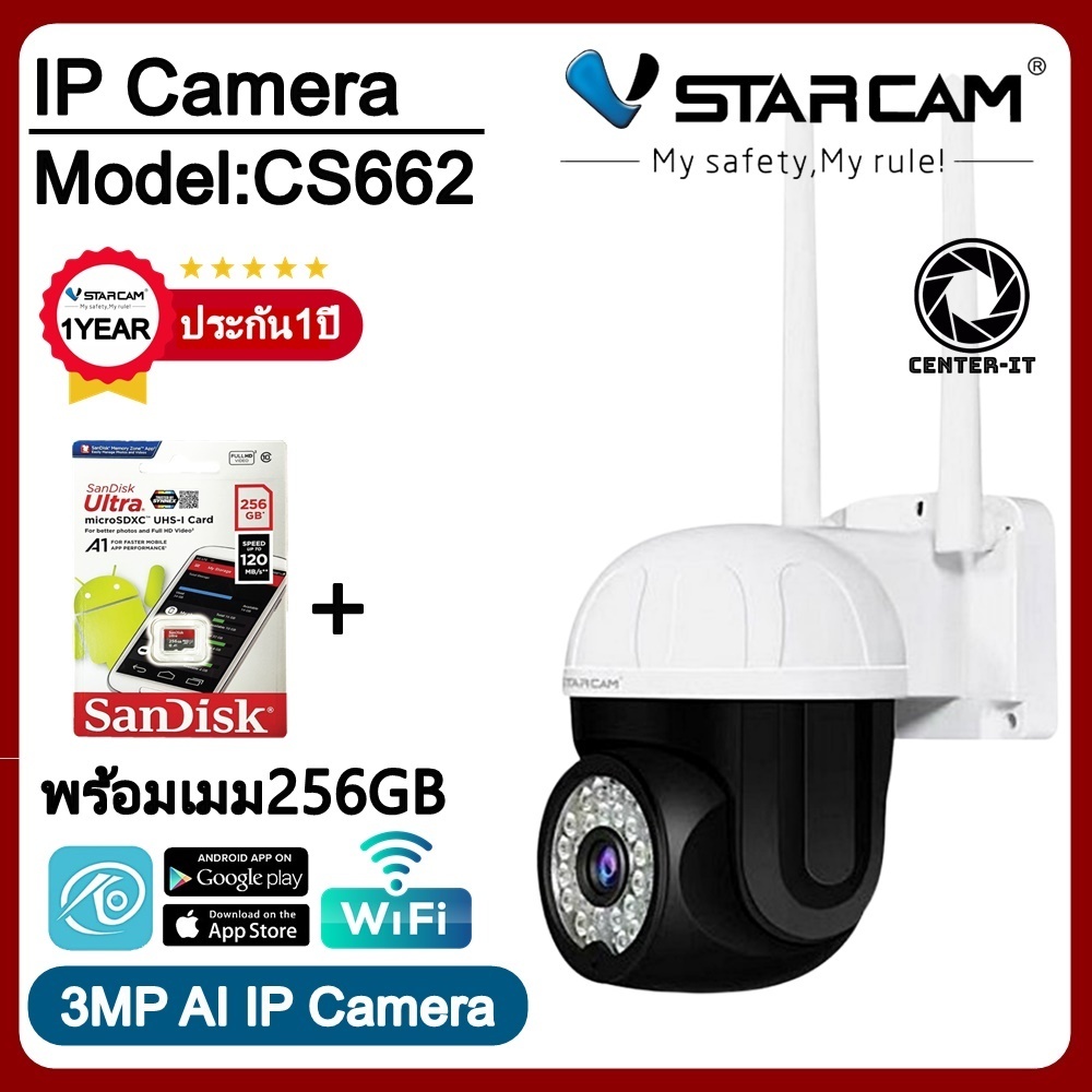VStarcam กล้องวงจรปิดกล้องใช้ภายนอก รุ่นCS64 ความละเอียด3ล้านพิกเซล H-264 พูดโต้ตอบได้ #Center-it