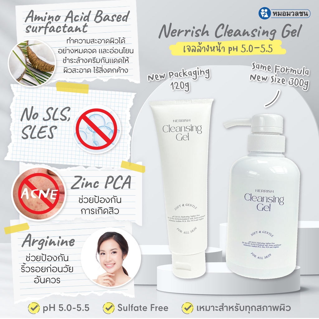 หมอมวลชน เนอริช คลีนซิ่งเจล เจลล้างหน้า 300 กรัม (Nerrish Cleansing Gel)