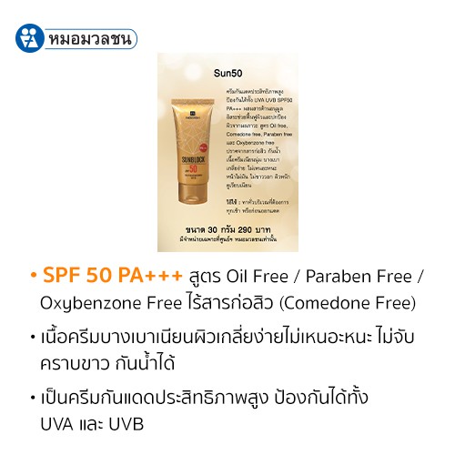 หมอมวลชน เนอริช ซันบล็อค เอสพีเอฟ 50 Nerrish Sunblock SPF 50 PA+++ ครีมกันแดดสำหรับผิวหน้าและผิวกาย