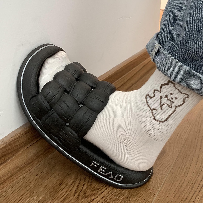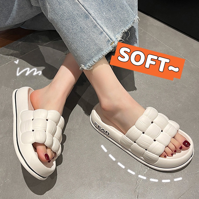 LGShoes ✨รองเท้าแตะแบบสวมออกมาเป็นลายสานตะกร้า ด้านข้างสกรีนตัวอักษรภาษาอังกฤษและมีสีตัดขอบ🍭พลาดไม่ได้น้าาา🔥
