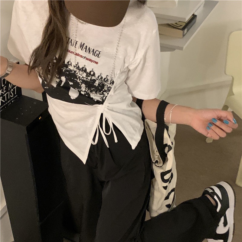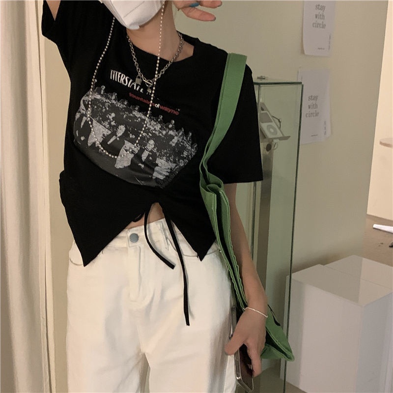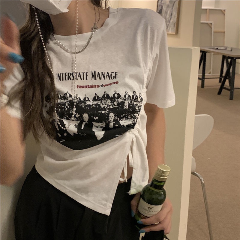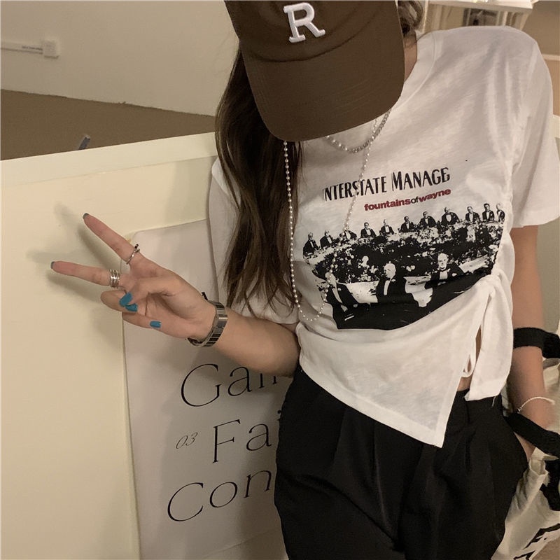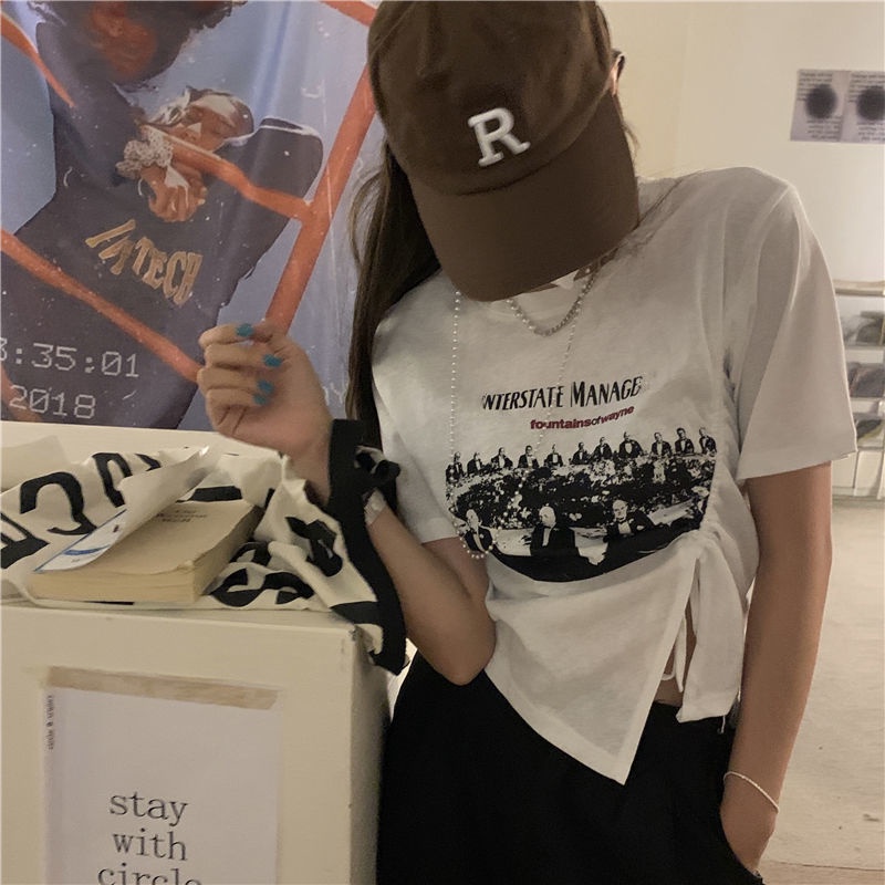 เสื้อยืดแขนสั้น คอกลม พิมพ์ลาย ทรงไม่สมมาตร สําหรับผู้หญิง