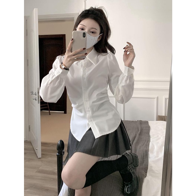เสื้อเชิ้ต แขนยาว สีขาว สไตล์เกาหลี สําหรับผู้หญิง