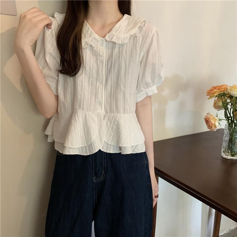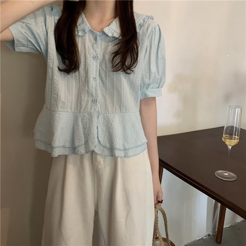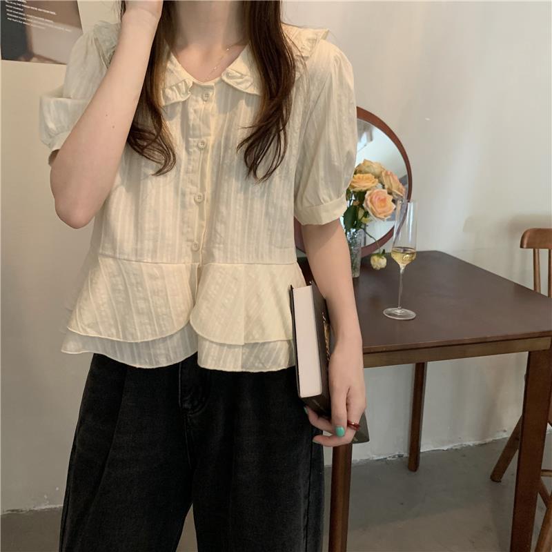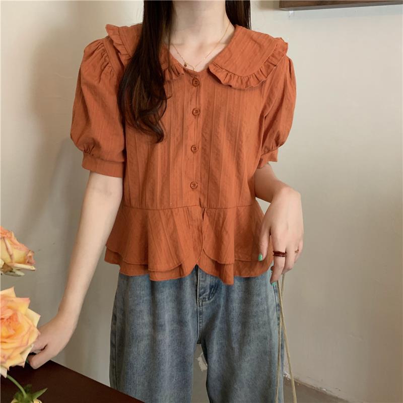 เสื้อเชิ้ตแขนพอง คอปก ทรงหลวม แฟชั่นฤดูใบไม้ผลิ สําหรับผู้หญิง 2022