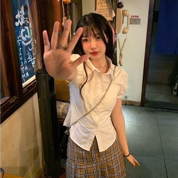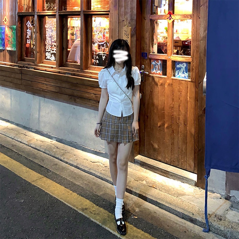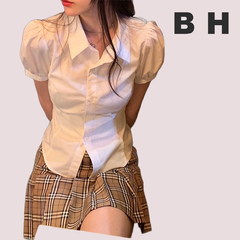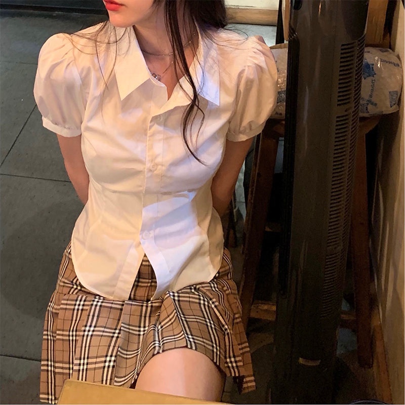 เสื้อเชิ้ตแขนสั้น แขนพอง สีขาว แฟชั่นฤดูร้อน สําหรับผู้หญิง
