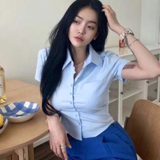 เสื้อเชิ้ตแขนสั้น คอกลม แฟชั่นฤดูร้อน สําหรับผู้หญิง