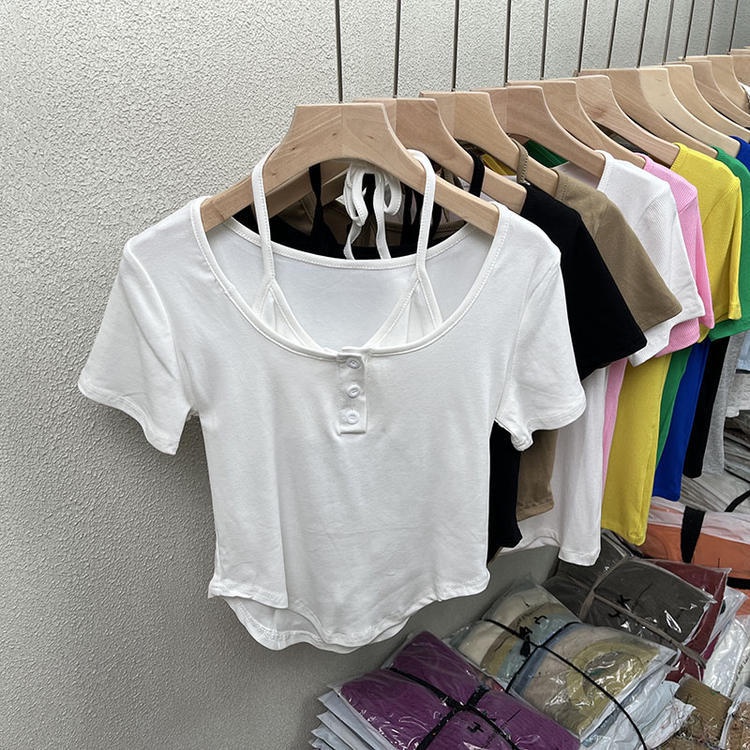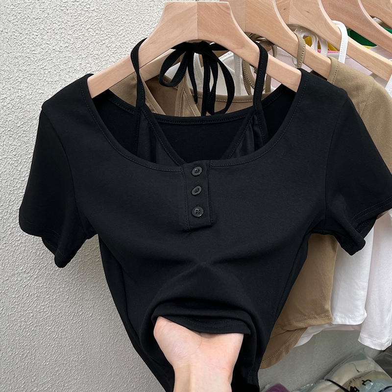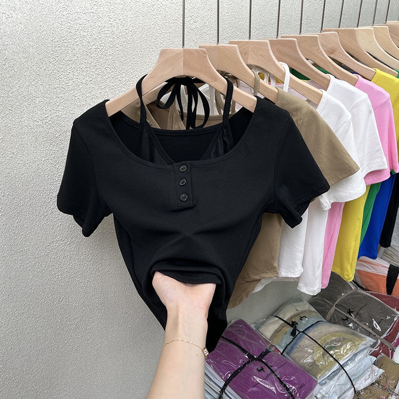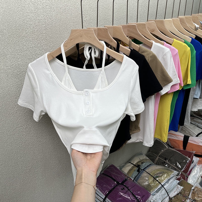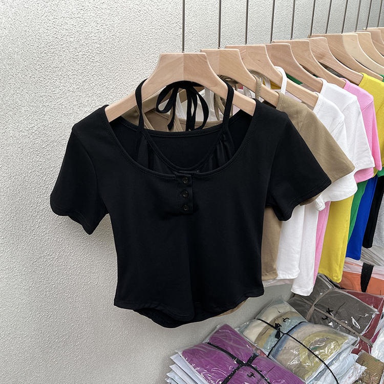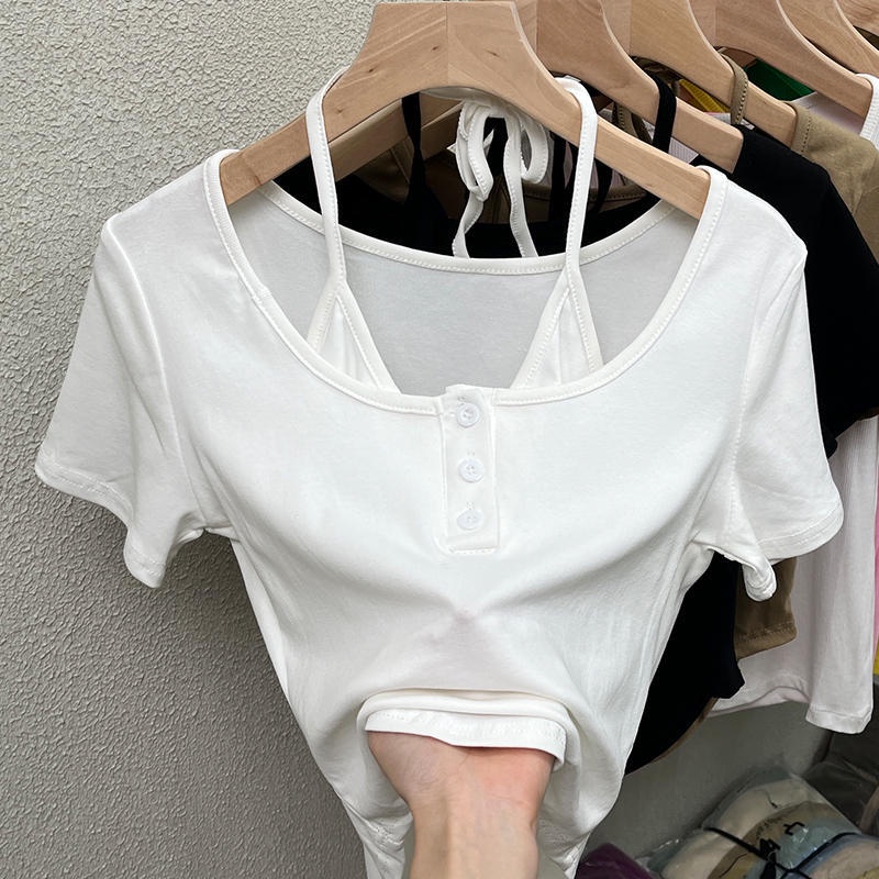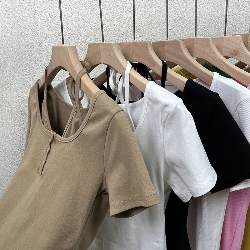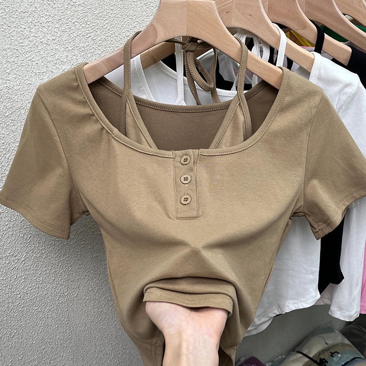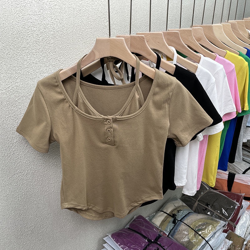 เสื้อยืดแขนสั้น คอผูกเชือก แฟชั่นฤดูร้อน สําหรับผู้หญิง 2022