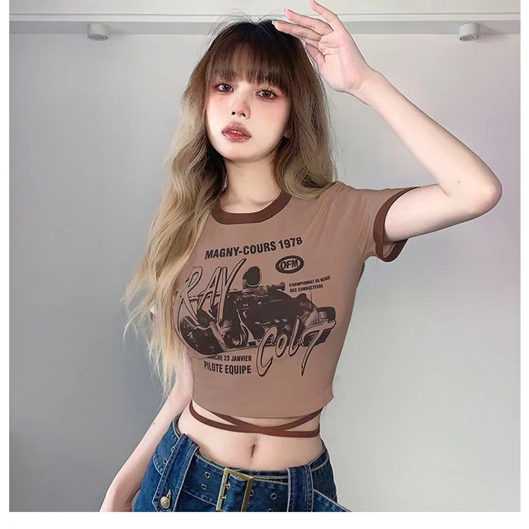 เสื้อยืด คอกลม แขนสั้น พิมพ์ลาย สไตล์ย้อนยุค สําหรับผู้หญิง