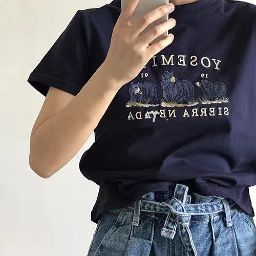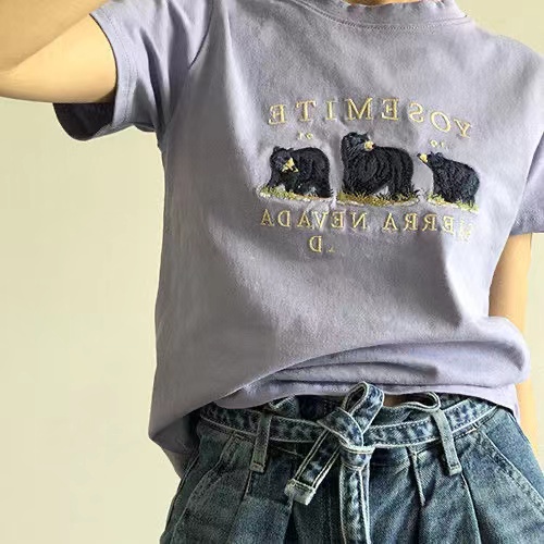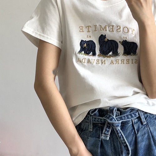 Bh เสื้อยืด แขนสั้น ผ้าฝ้าย ลายหมี สไตล์เกาหลี แฟชั่นฤดูร้อน สําหรับผู้หญิง