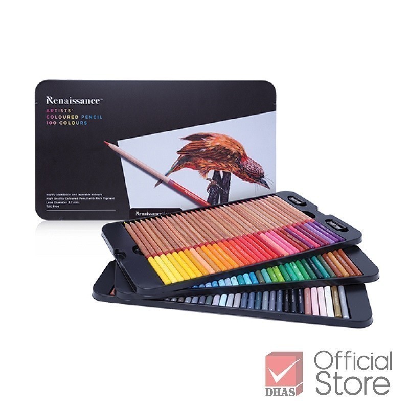 Renaissance สีไม้ ดินสอสีไม้ เกรดอาร์ตติส รุ่น 100 สี กล่องเหล็ก จำนวน 1 กล่อง