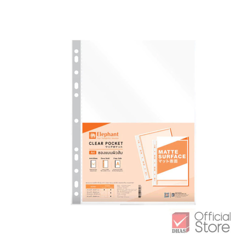 Elephant ไส้แฟ้ม ซองใสเอนกประสงค์ รุ่นผิวส้ม 0.05 มม. A4 จำนวน 100 ซอง/แพ็ค