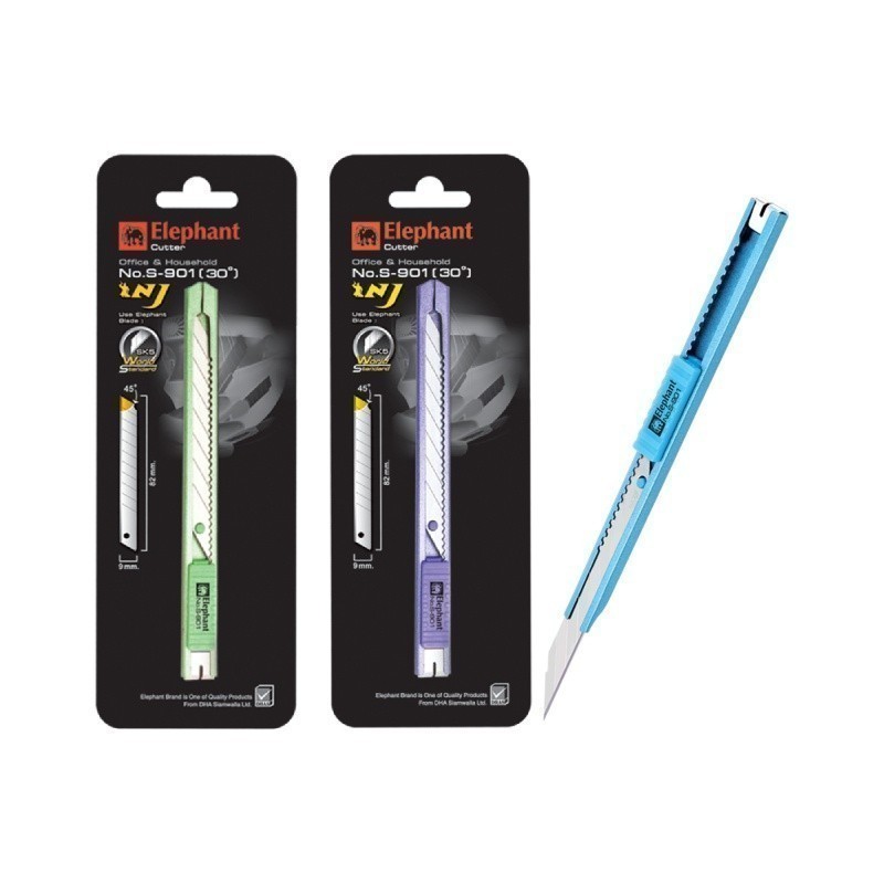 Elephant คัตเตอร์ มีดคัตเตอร์ Economy รุ่น S-901 9 มม. 30° ใบมีด SK5 คละสี จำนวน 1 อัน