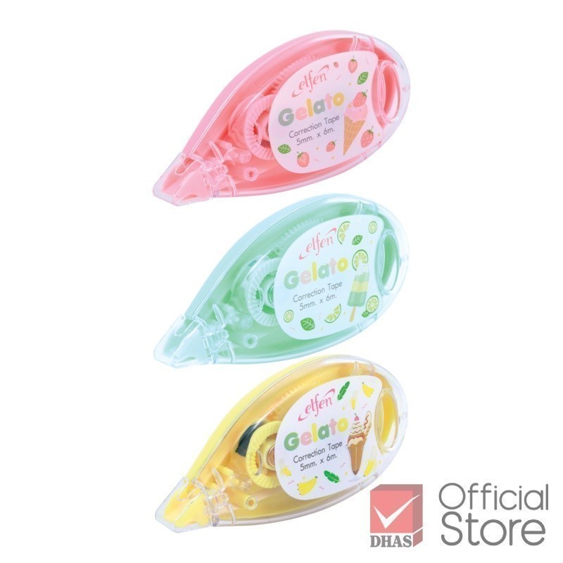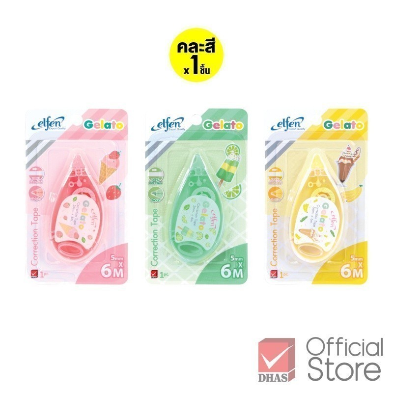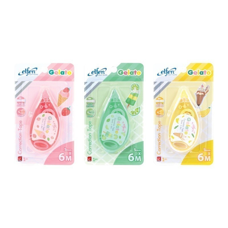 Elfen เทปลบคำผิด 6 ม. รุ่นเจลาโต้ คละสี จำนวน 1 ชิ้น