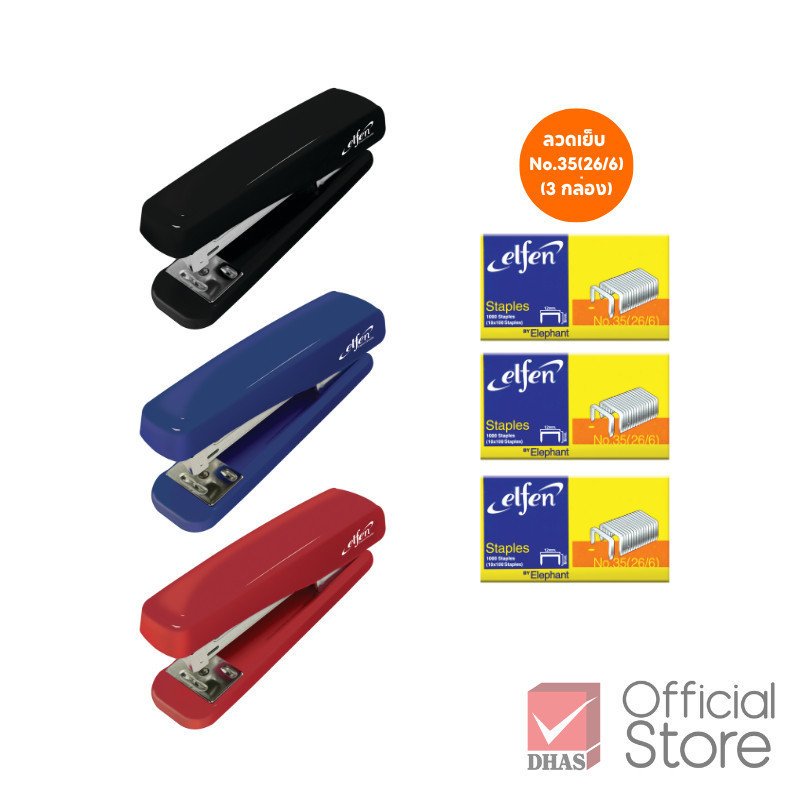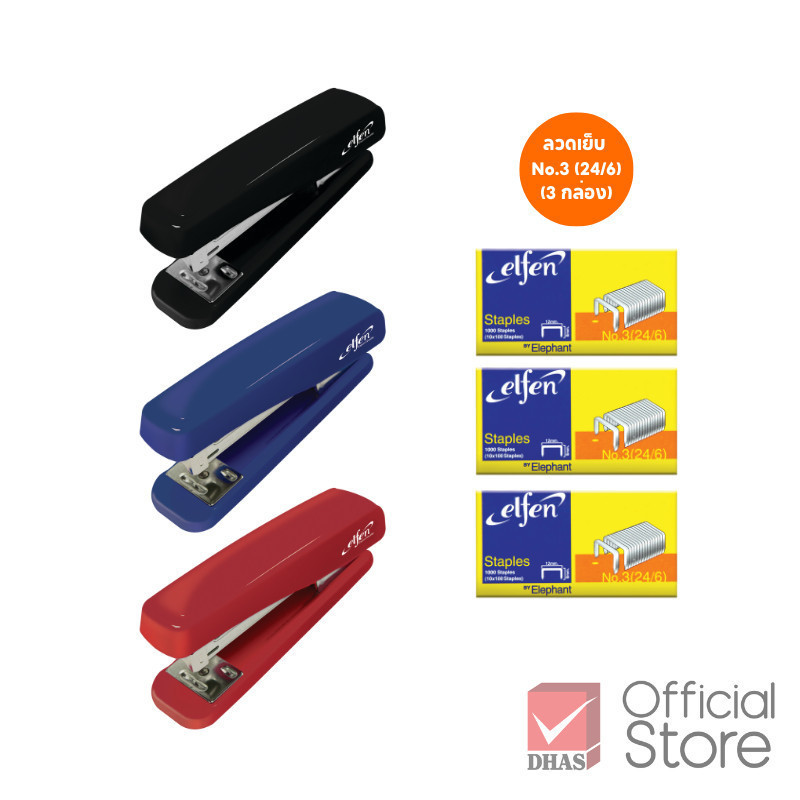 Elfen เครื่องเย็บกระดาษ No.45P คละสี (พร้อมลวดเย็บ 3 กล่อง) จำนวน 1 เครื่อง