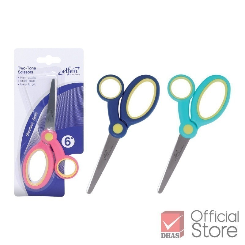 Elfen กรรไกร กรรไกรตัดกระดาษ ทูโทน คละสี จำนวน 1 เล่ม