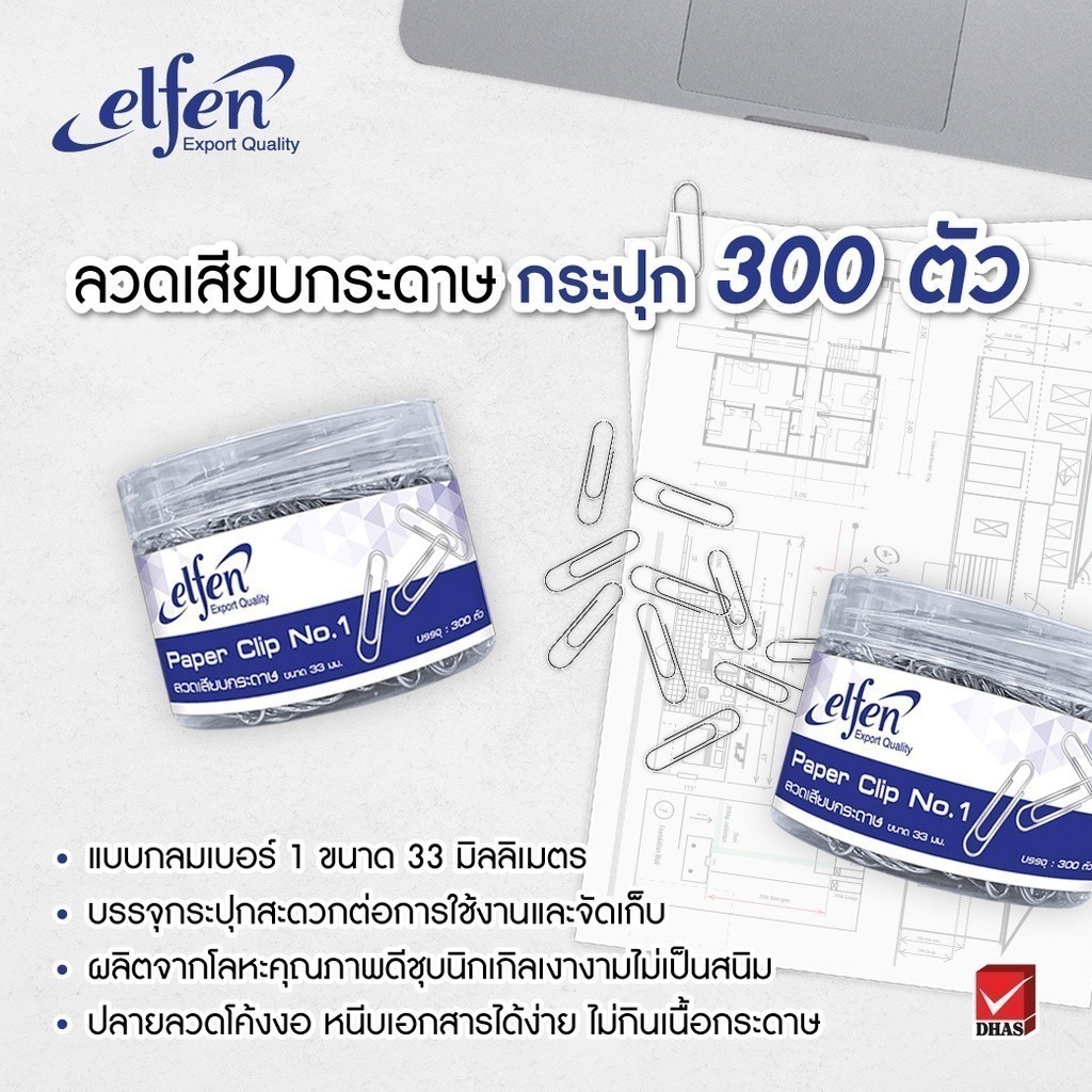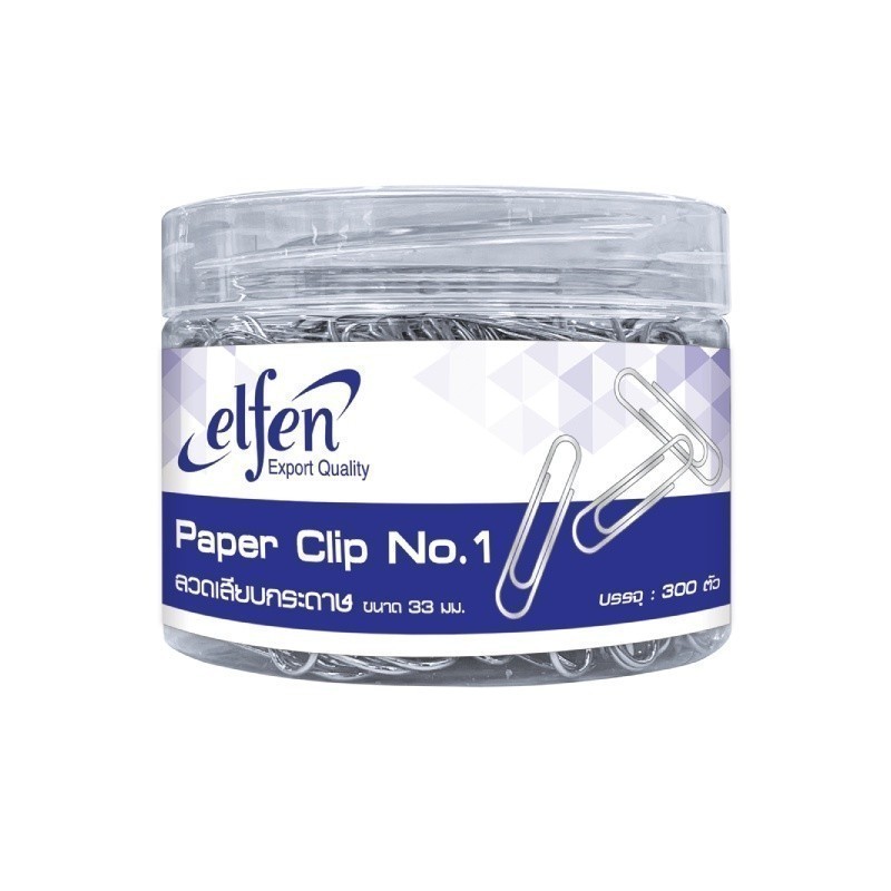 Elfen ลวดเสียบกระดาษ คลิปหนีบกระดาษ เบอร์ 1 แบบกลม ขนาด 33 มม. – จำนวน 1 กระปุก (300 ตัว)