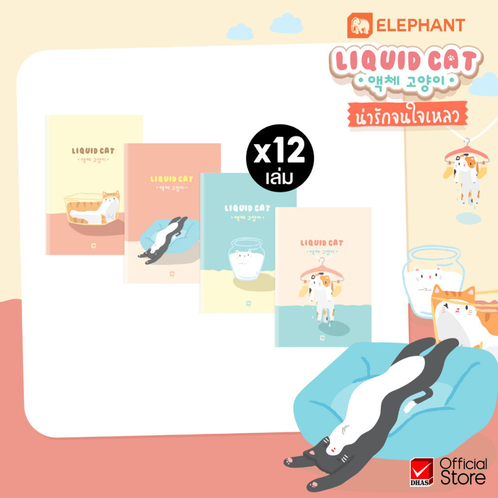 Elephant สมุด สมุดนักเรียน 9/40 70G 40S ลิควิดแคท คละลาย จำนวน 12 เล่ม
