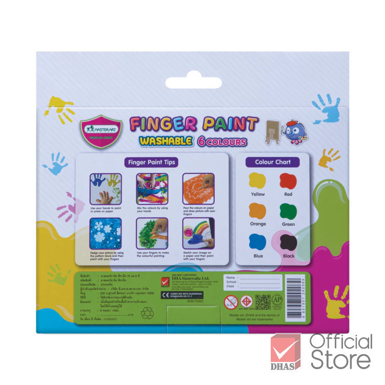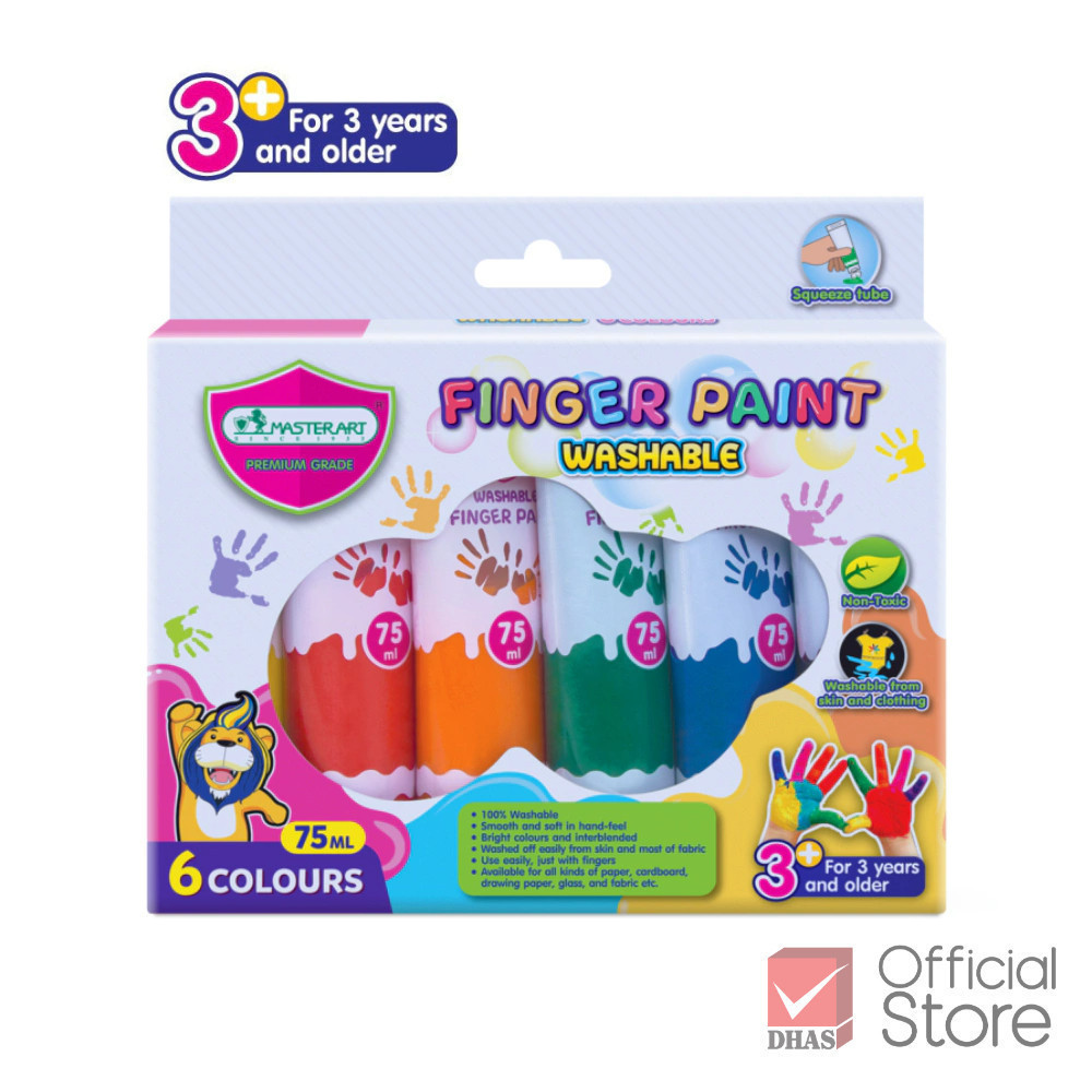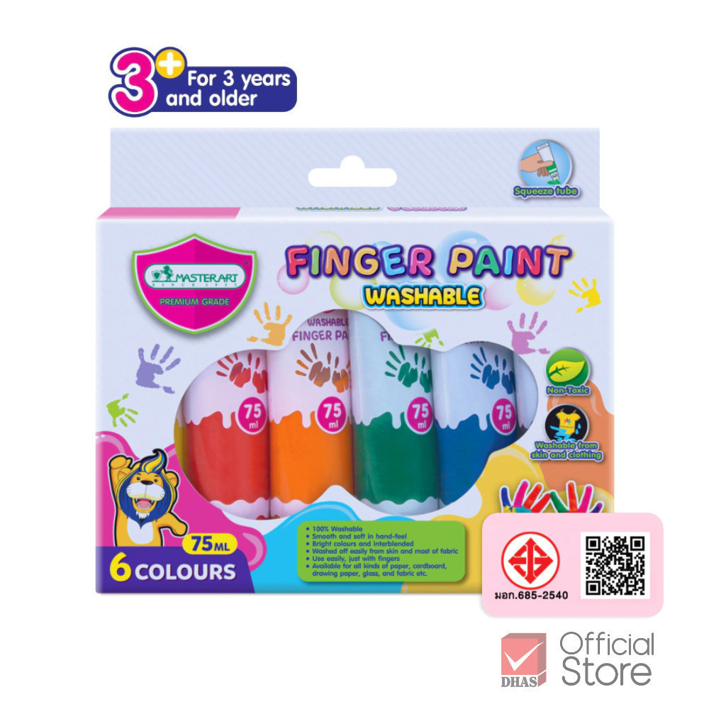 Master Art สีทามือ ฟิงเกอร์เพ้นท์ สีปลอดสารพิษสำหรับเด็ก ชนิดหลอดบีบ 75 ml. 6 สี เสริมพัฒนาการเด็กวัย 3 ขวบขึ้นไป
