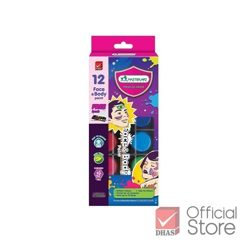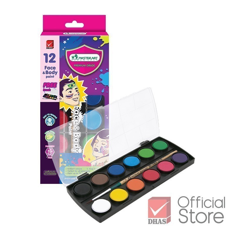 Master Art สีทาหน้าผิวหน้าและร่างกาย 12 สี สำหรับเด็กเล็ก 3 ขวบขึ้นไป