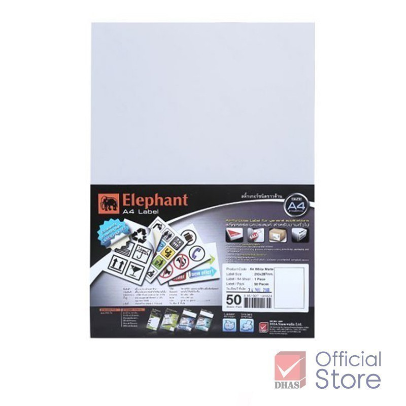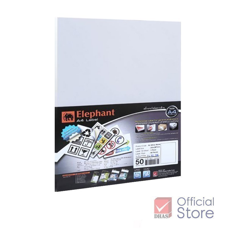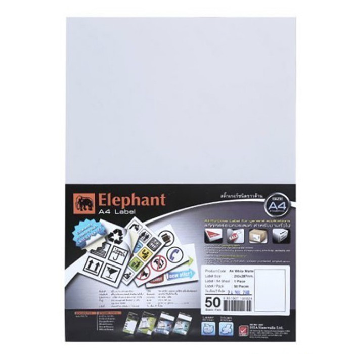 Elephant กระดาษสติ๊กเกอร์ สติ๊กเกอร์ ขาวด้าน A4 50 แผ่น/แพ็ค