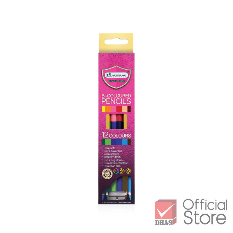 Master Art สีไม้ ดินสอสีไม้ 2 หัว 12 สี รุ่นใหม่ จำนวน 1 กล่อง