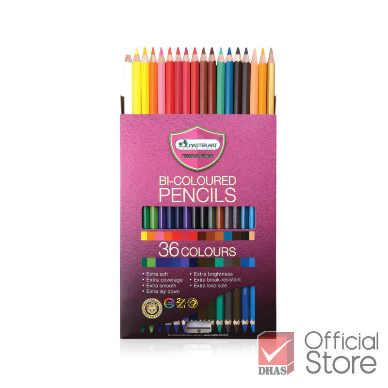Master Art สีไม้ ดินสอสีไม้ 2 หัว 36 สี รุ่นใหม่ จำนวน 1 กล่อง