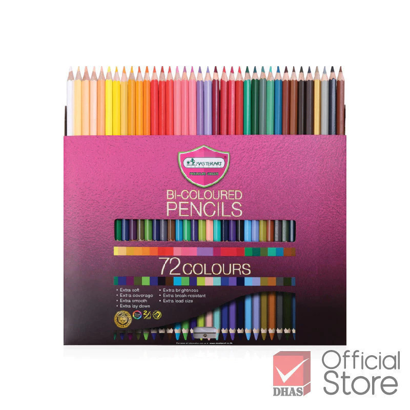 Master Art สีไม้ ดินสอสีไม้ 2 หัว 72 สี ร ุ่นใหม่ จำนวน 1 กล่อง