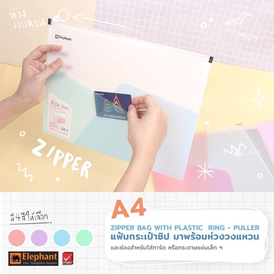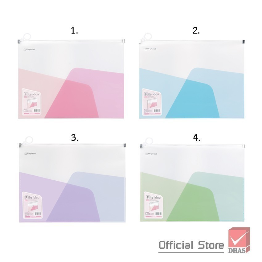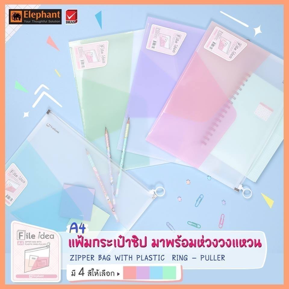 [Clearance Sale] Elephant แฟ้มซิป กระเป๋าซิปพลาสติก File Idea Z01 A4 จำนวน 1 ชิ้น (คละสี)