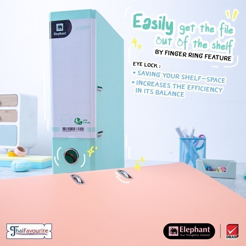 Elephant แฟ้ม แฟ้มใส่เอกสาร สันกว้าง No.2100F สีพาสเทล จำนวน 1 แฟ้ม