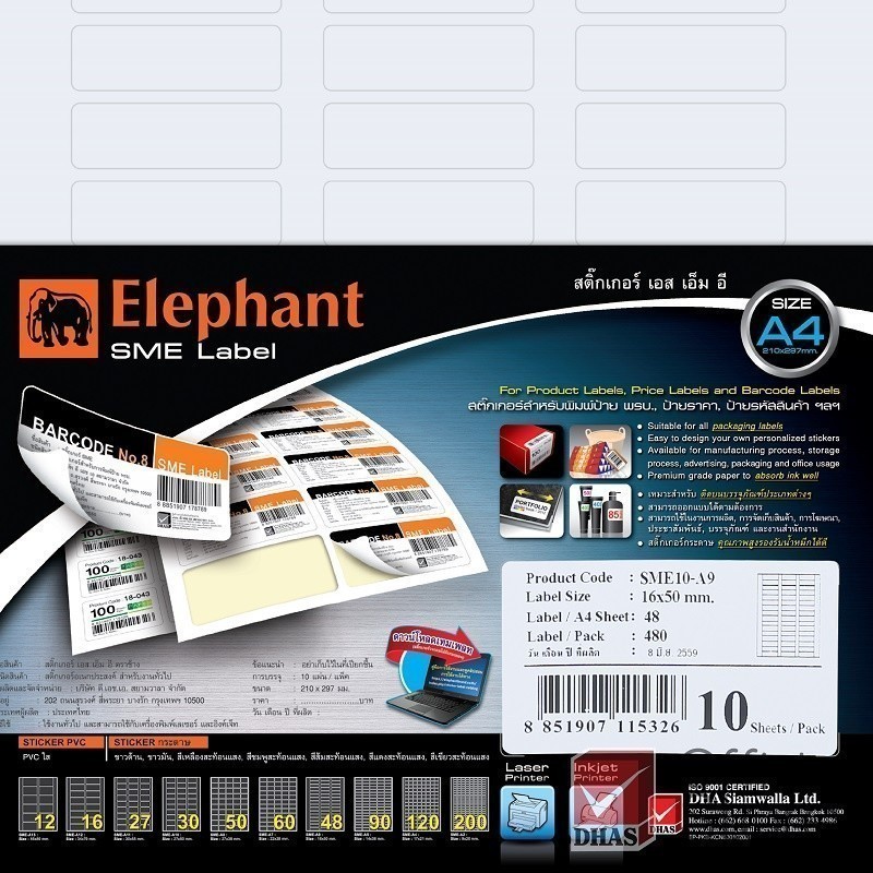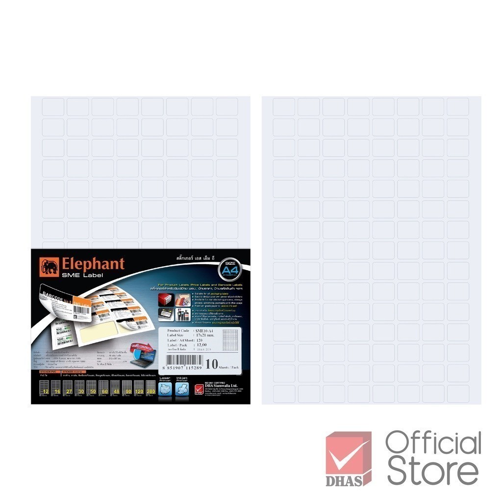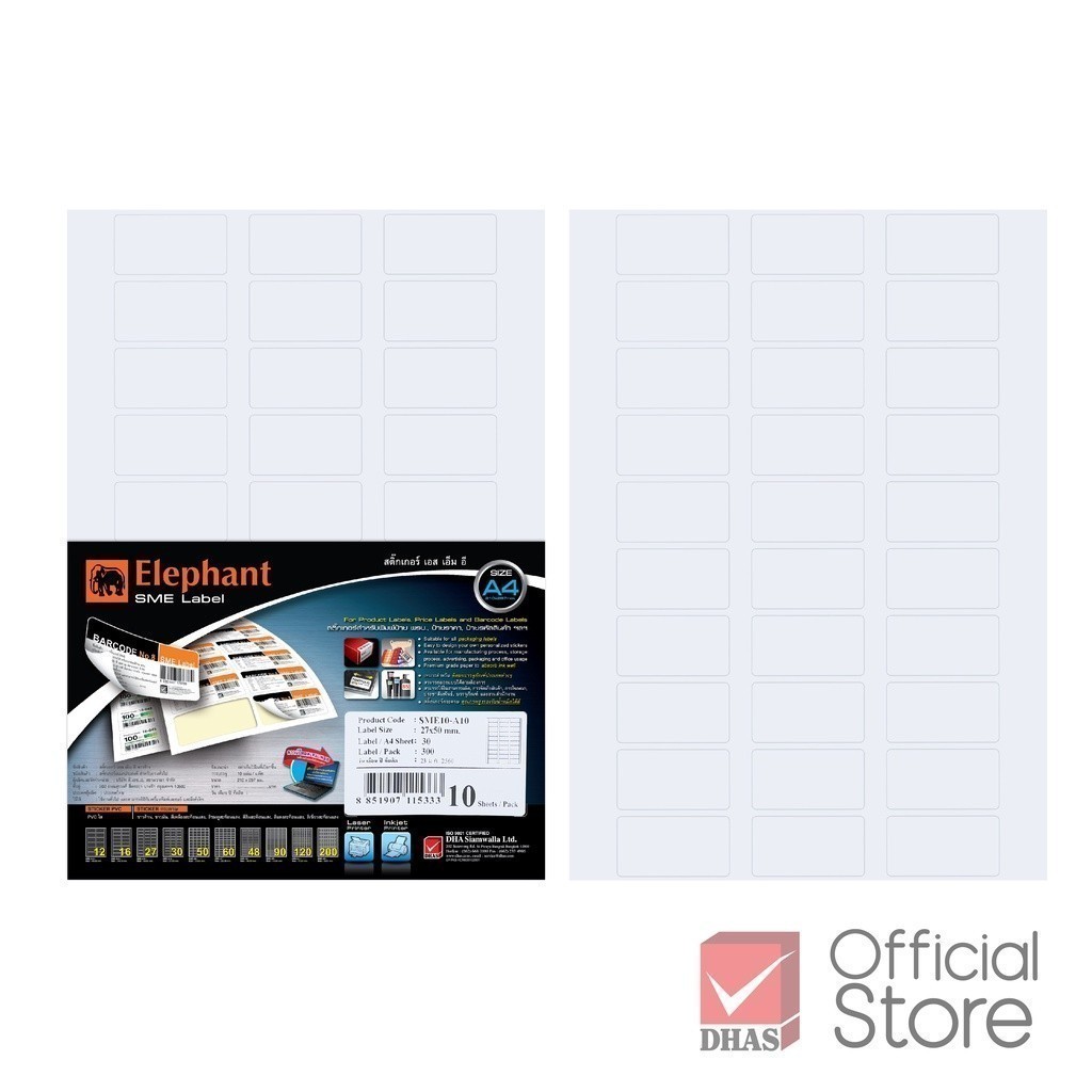 Elephant กระดาษสติ๊กเกอร์ สติ๊กเกอร์ SMEs A4 บรรจุ 10 แผ่น/แพ็ค จำนวน 1 แพ็ค