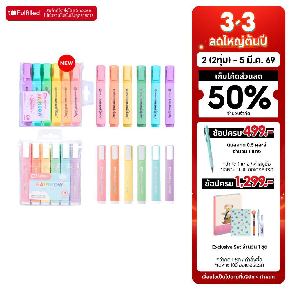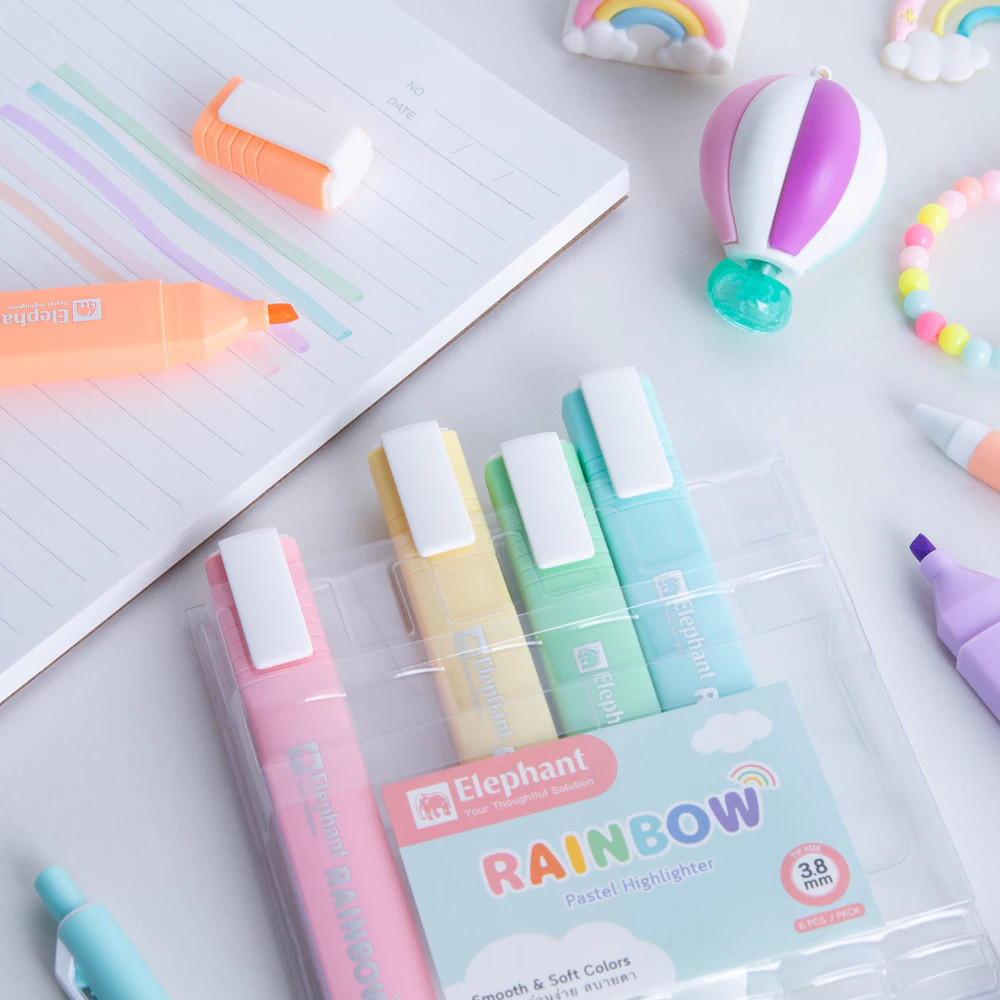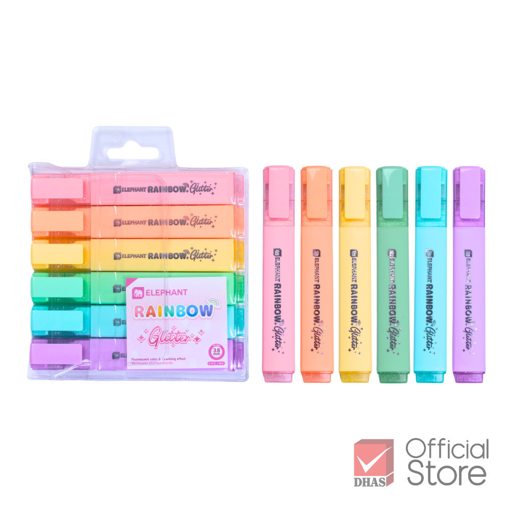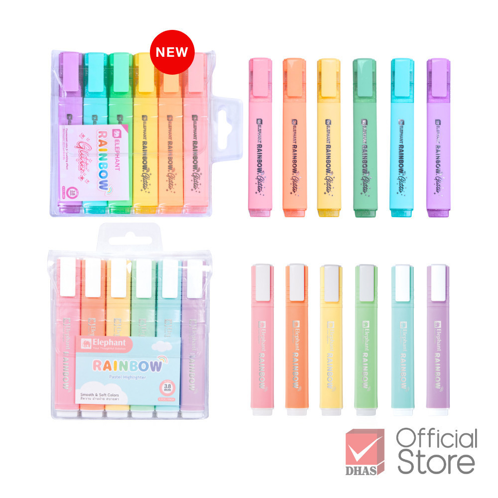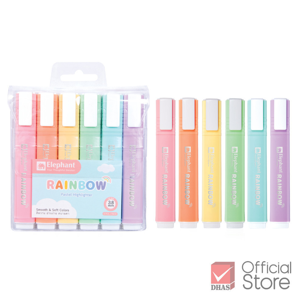 Elephant ปากกาไฮไลท์ ปากกาเน้นข้อความ เรนโบว์ คละสี จำนวน 1 แพ็ค