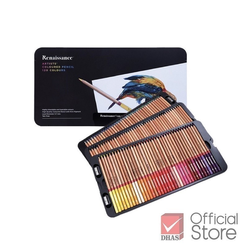 Renaissance สีไม้ ดินสอสีไม้ เกรดอาร์ตติส รุ่น 120 สี กล่องเหล็ก จำนวน 1 กล่อง