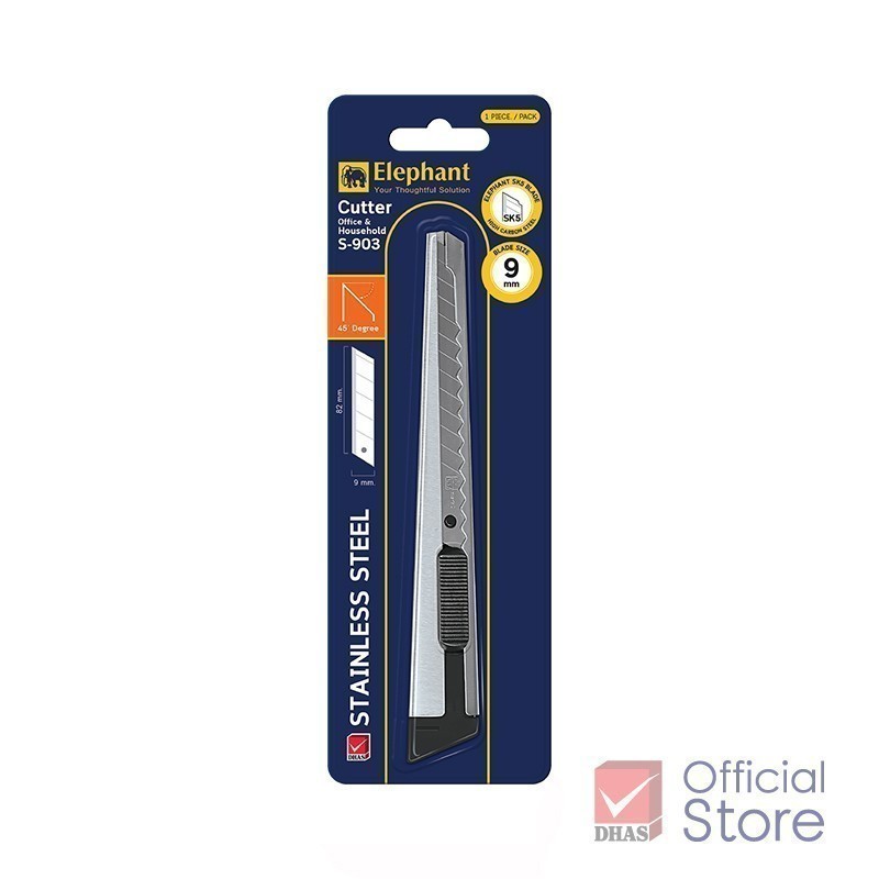 Elephant คัตเตอร์ มีดคัตเตอร์ Economy รุ่น S-903 9 มม. 45° ใบมีด SK5 จำนวน 1 อัน