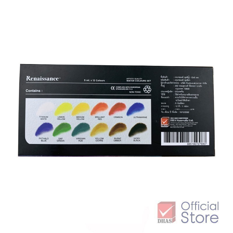 Renaissance สีน้ำ ชุดสีน้ำ 12 สี 5 มล. จำนวน 1 กล่อง