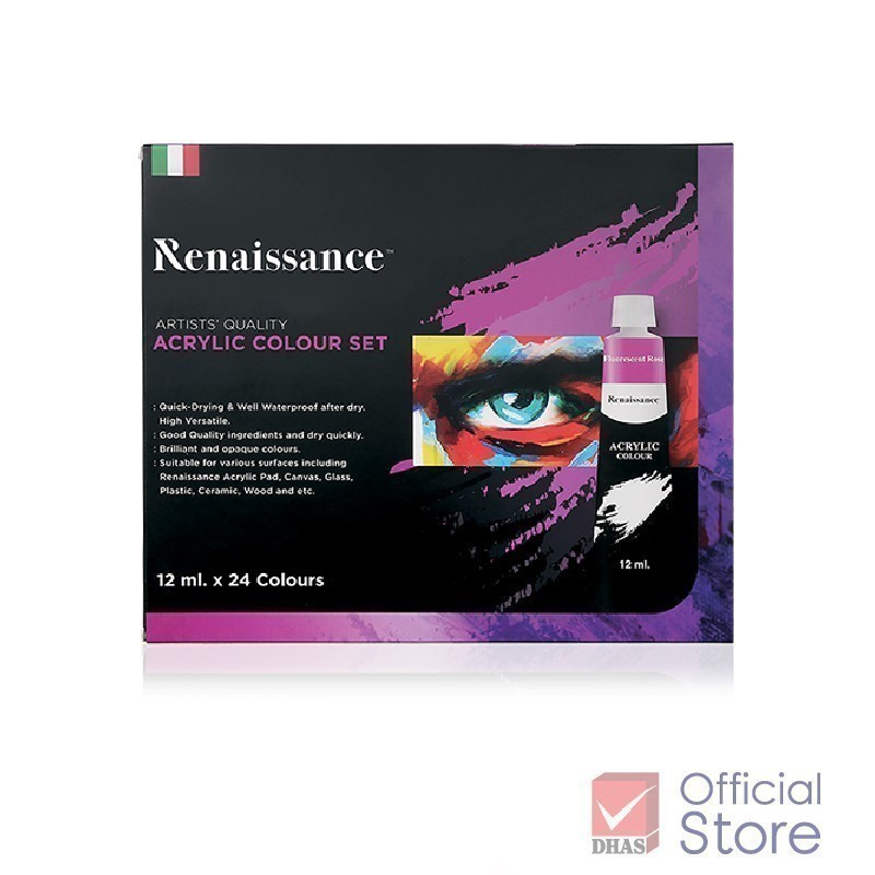 Renaissance สีอะคริลิค ชุดสีอะคริลิค 12 มล. 24 สี จำนวน 1 กล่อง