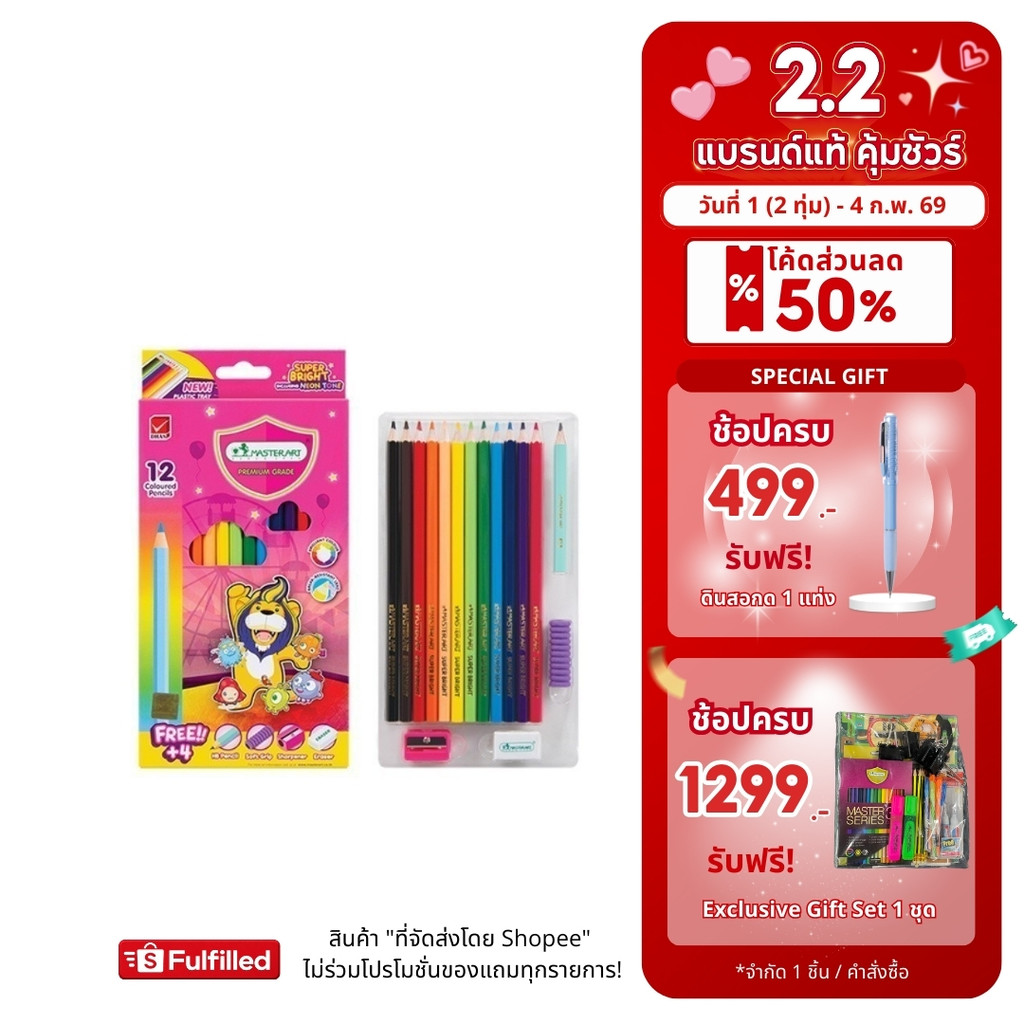 Master Art สีไม้ รุ่น Super Bright 12 สี (ไส้ใหญ่ 3.3 มม. สีสดพิเศษ) - 1 กล่อง