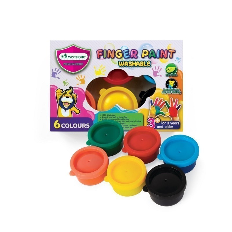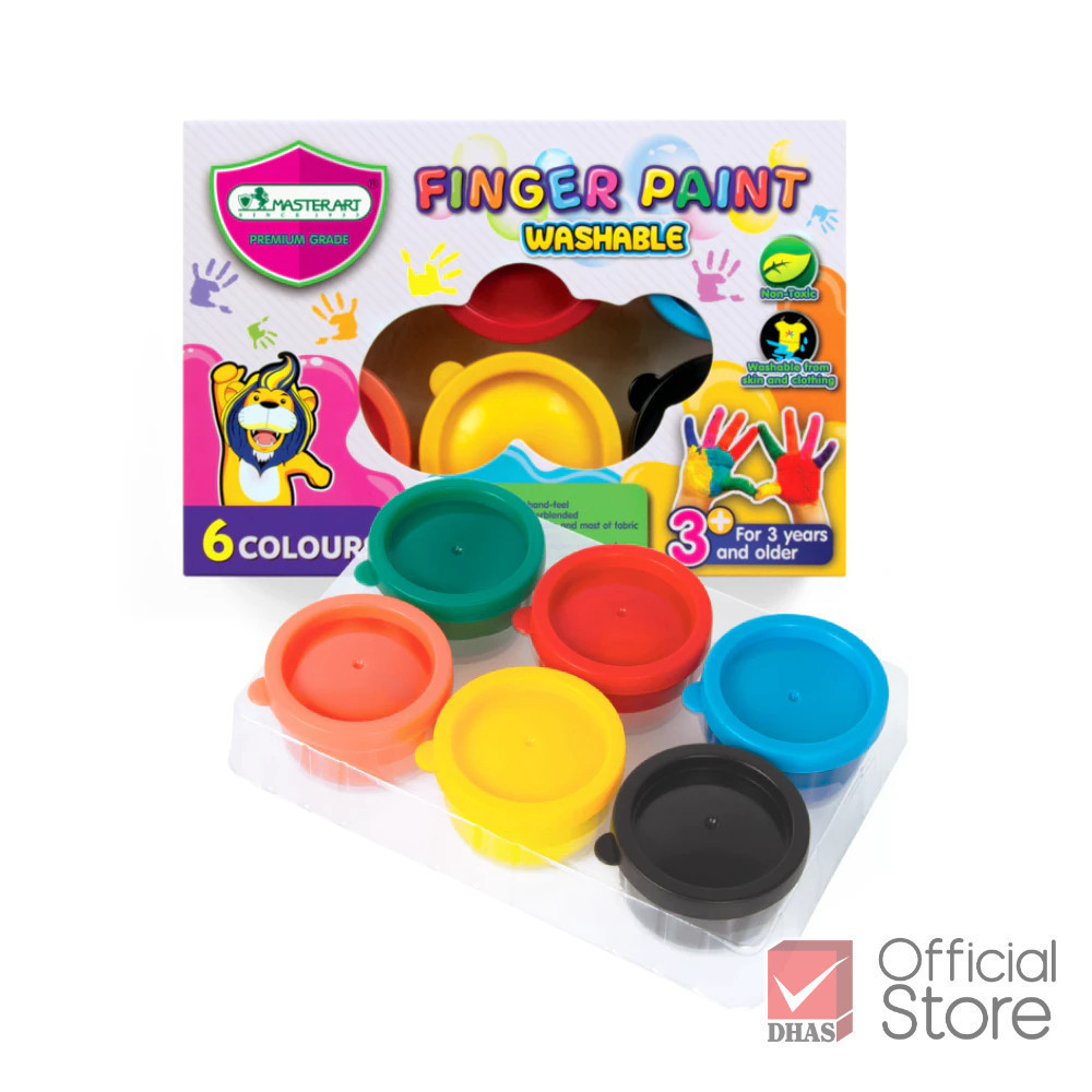 Master Art สีทามือ ฟิงเกอร์เพ้นท์ สีปลอดสารพิษสำหรับเด็ก ชนิดกระปุก 35 ml. 6 สี เสริมพัฒนาการเด็กวัย 3 ขวบขึ้นไป