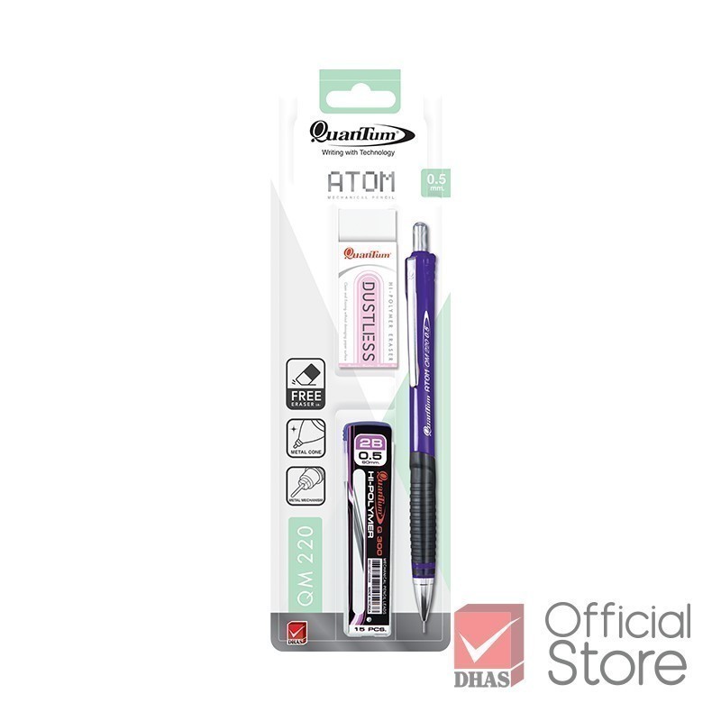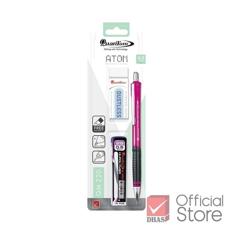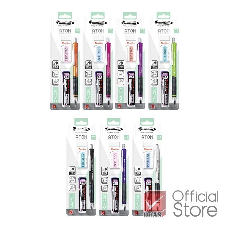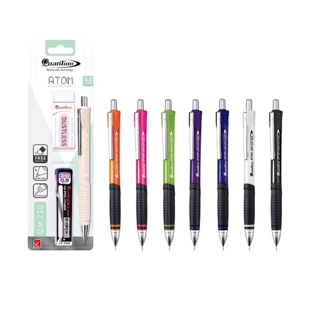 Quantum ดินสอ ดินสอกด QM220 ไส้ดินสอกด+ ยางลบ คละสี จำนวน 1 ชุด