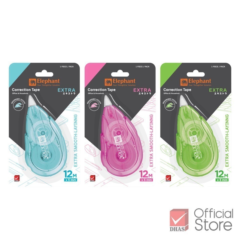 Elephant เทปลบคำผิด รุ่น เอ็กซ์ตร้า 5 มม.x12ม. จำนวน 1 ชิ้น