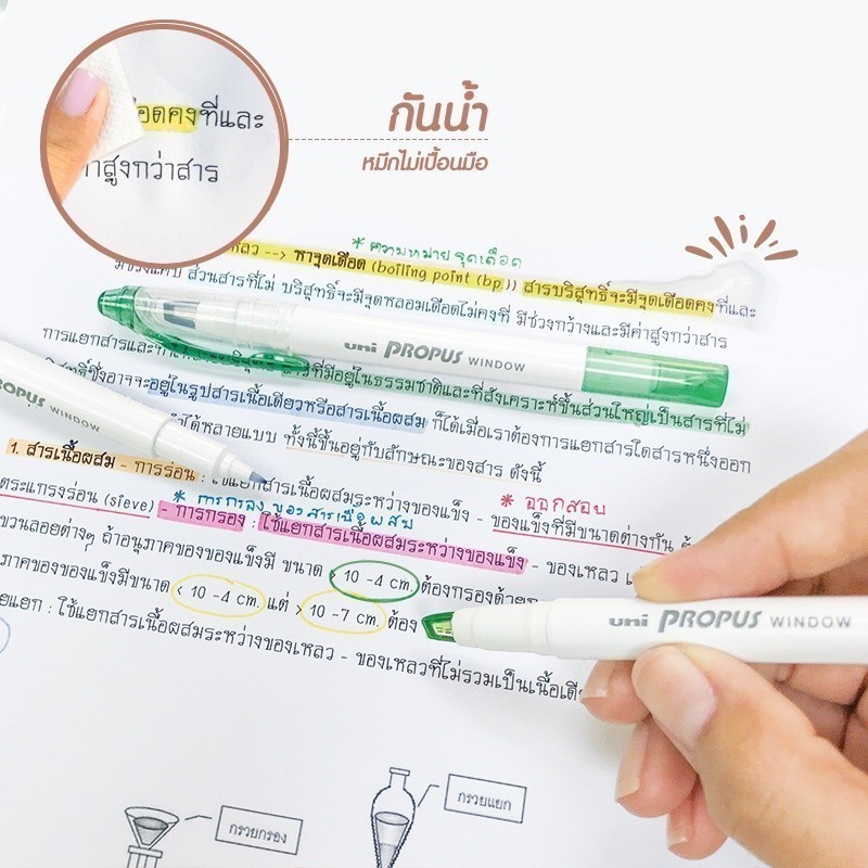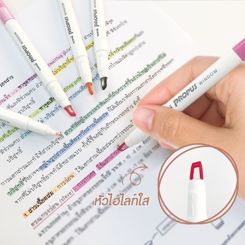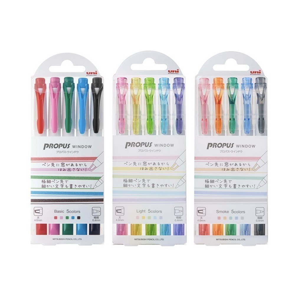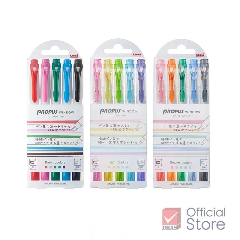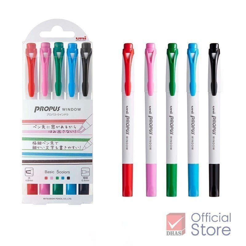 Uni ปากกาไฮไลท์ ปากกาเน้นข้อความ 2 หัว Propus Window ชุด 5 สี จำนวน 1 ชุด