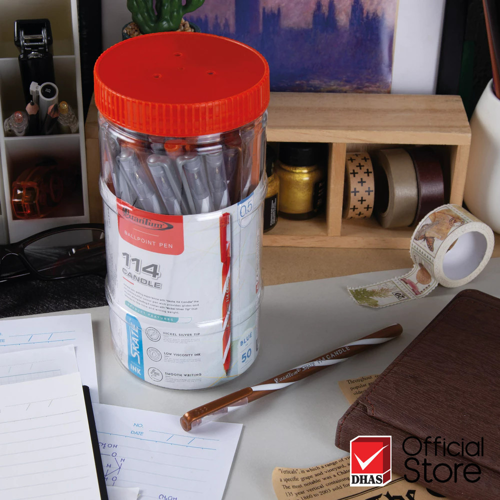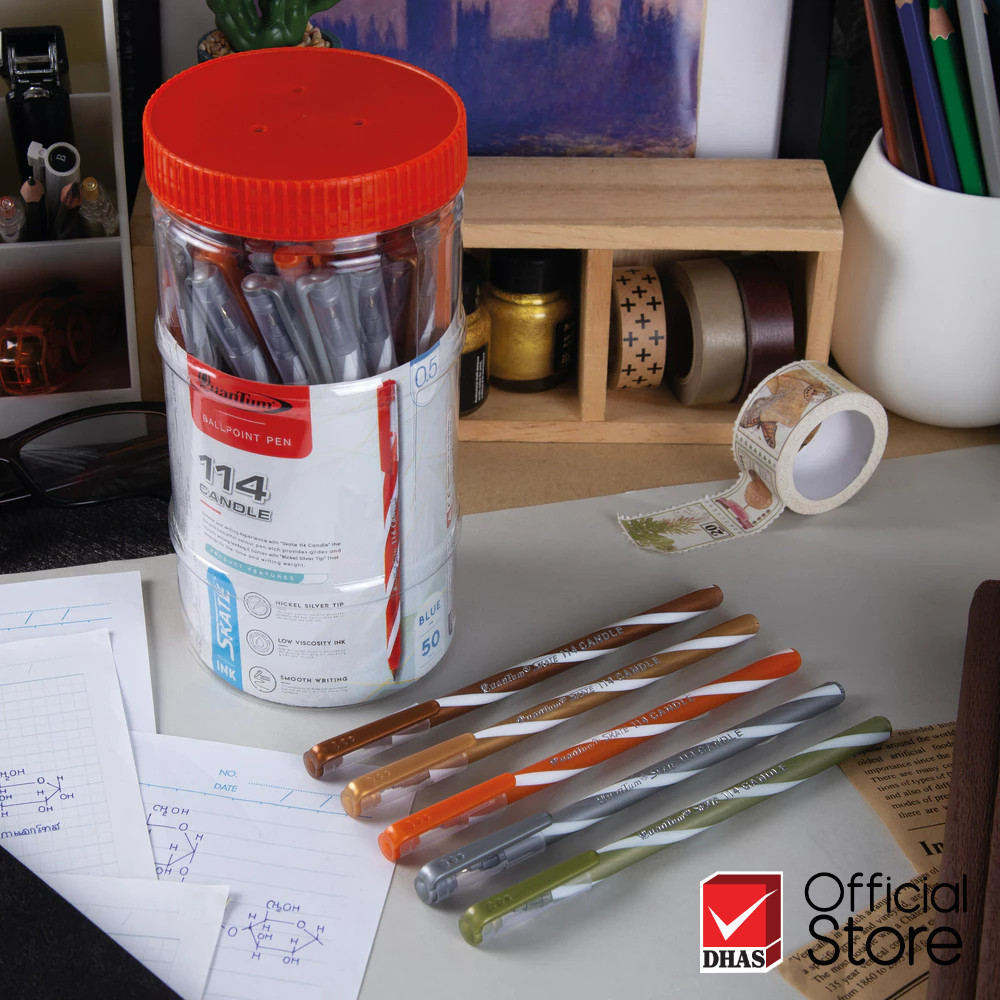 Quantum ปากกา ปากกาน้ำเงิน ปากกาโหล ปากกาลูกลื่น สเก็ต 114 แคนเดิล น้ำเงิน 0.5 คละสี จำนวน 50 ด้าม
