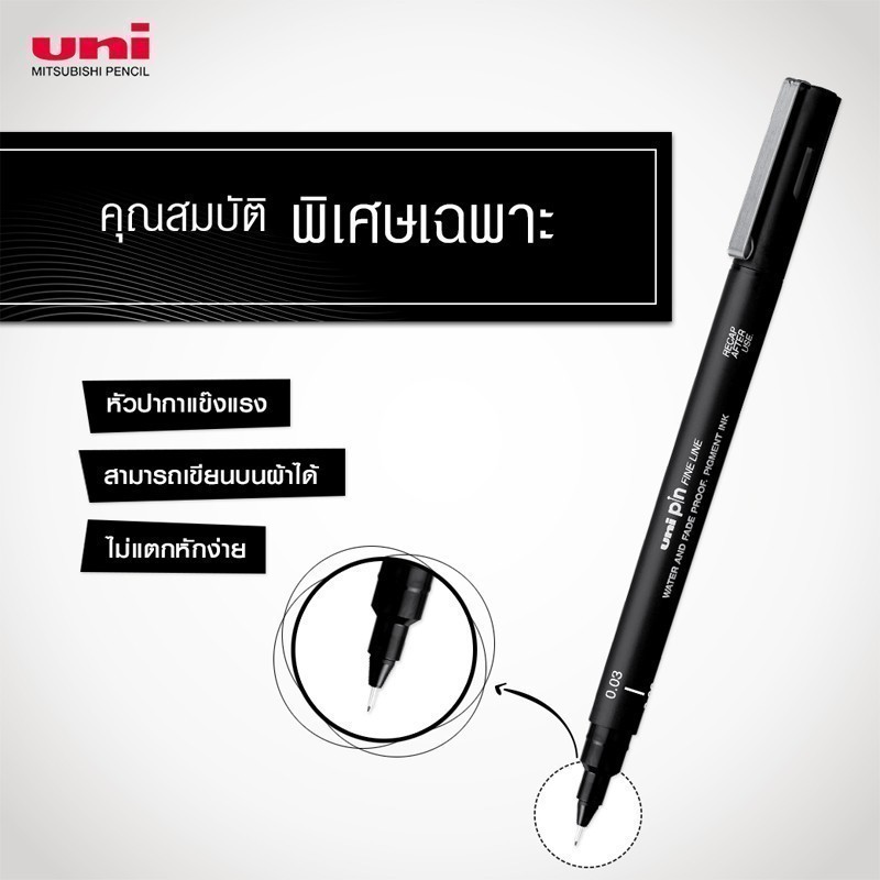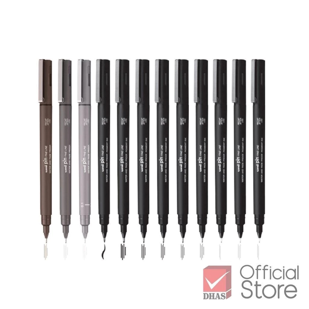 Uni ปากกา ปากกาตัดเส้น หัวเข็ม PIN 0.03 - 0.8 & Brush จำนวน 1 ด้าม