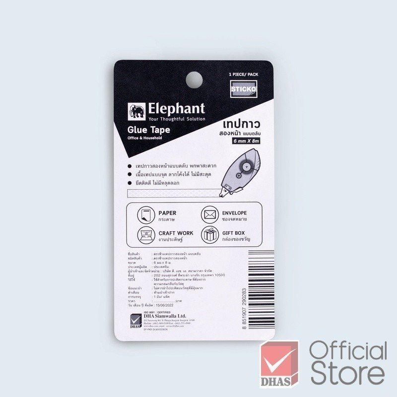 Elephant Glue tape เทปกาวสองหน้า แบบตลับ GT-01 6 มม.X 8ม. จำนวน 1 ชิ้น