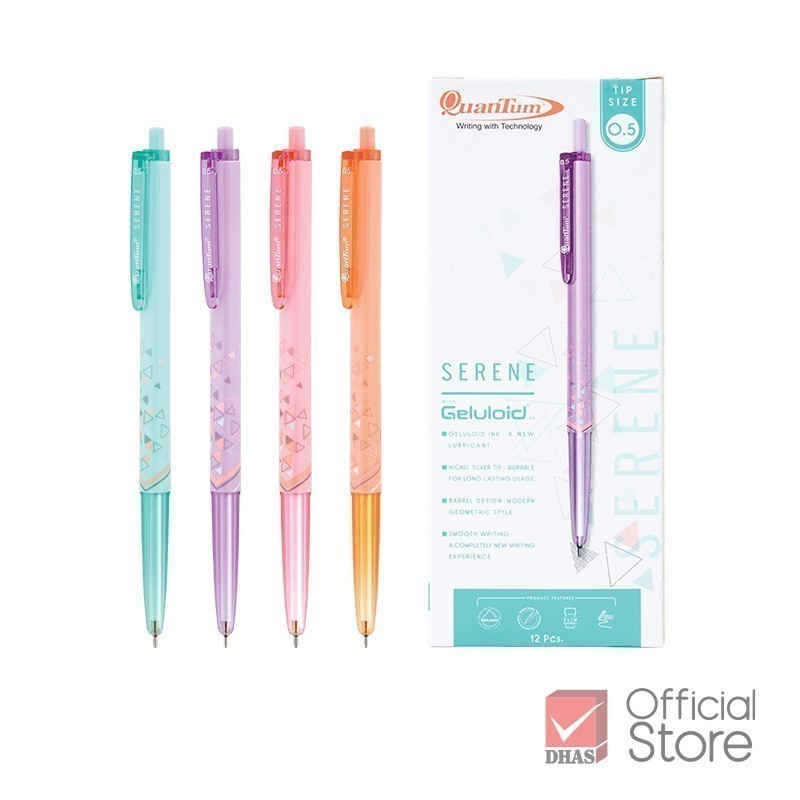 Quantum ปากกา ปากกาลูกลื่น เจลลูลอยด์ ซีลีน 0.5 น้ำเงิน คละสี จำนวน 4 ด้าม