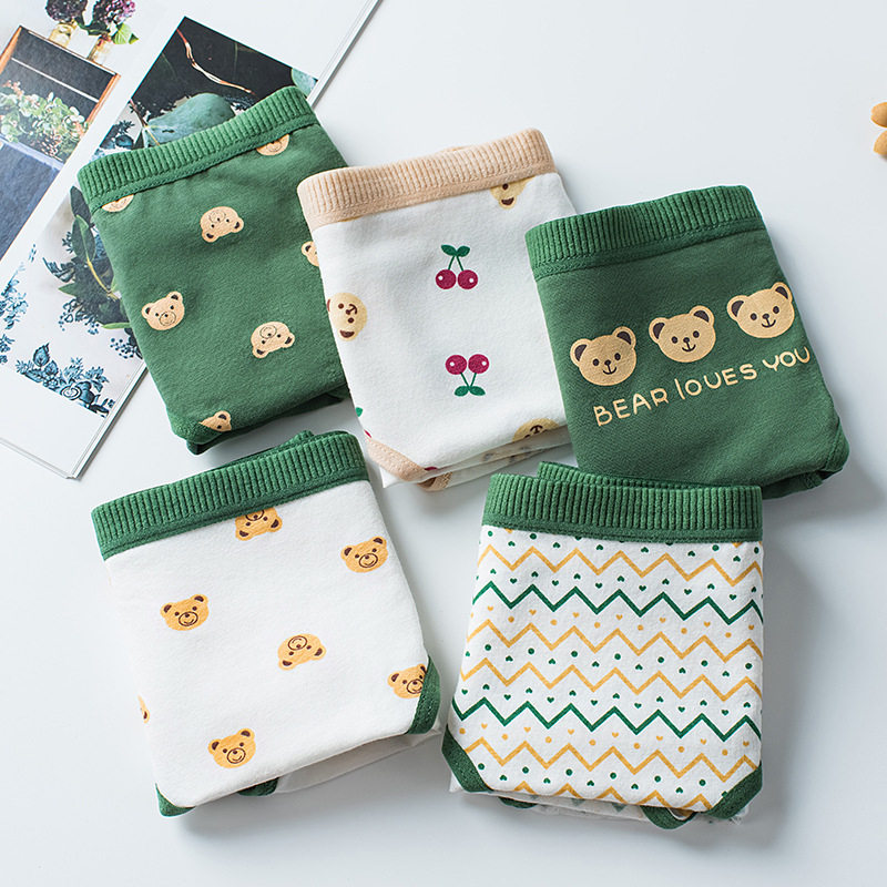 A-90 กางเกงในน่ารัก เอวต่ำผ้าคอตตอน กางเกงในเซตลายหมีสีเขียว ต้องจัดทั้งเซ็ตแล้ว พร้อมส่งง
